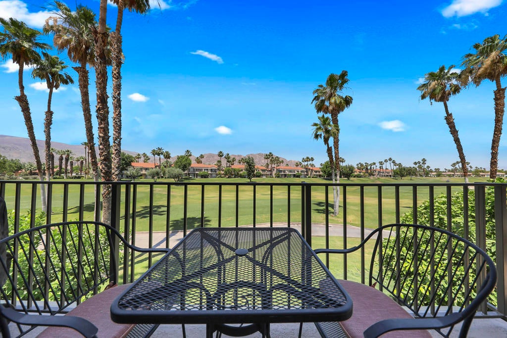 Panorama of Mountain Views on the Golf Course! Be a Front Row Spectator at the American Express Golf Tournament from the Comfort of your Own Balcony. 3 BR/2BA Spacious 2129 Sq. Ft.! Soft Water System, LED Lighting, Two Electric Balcony Patio Awnings with Wind Sensors for Auto Retraction, Nest Thermostat, Tinted Windows with 3M Night Vision, Ceiling Fans, Baseboards, Central Vacuum System, Wood Plantation Shutters. Oversized Primary with En-Suite Bath Features Custom Desk Designed for Two, Window Seat, Built-In Bookcases and Large Customized Walk-In Closet. 2 Car Garage has Utility Sink Plumbed with Hot and Cold Water. Community Pools Close by and Turnkey Furnished for You!