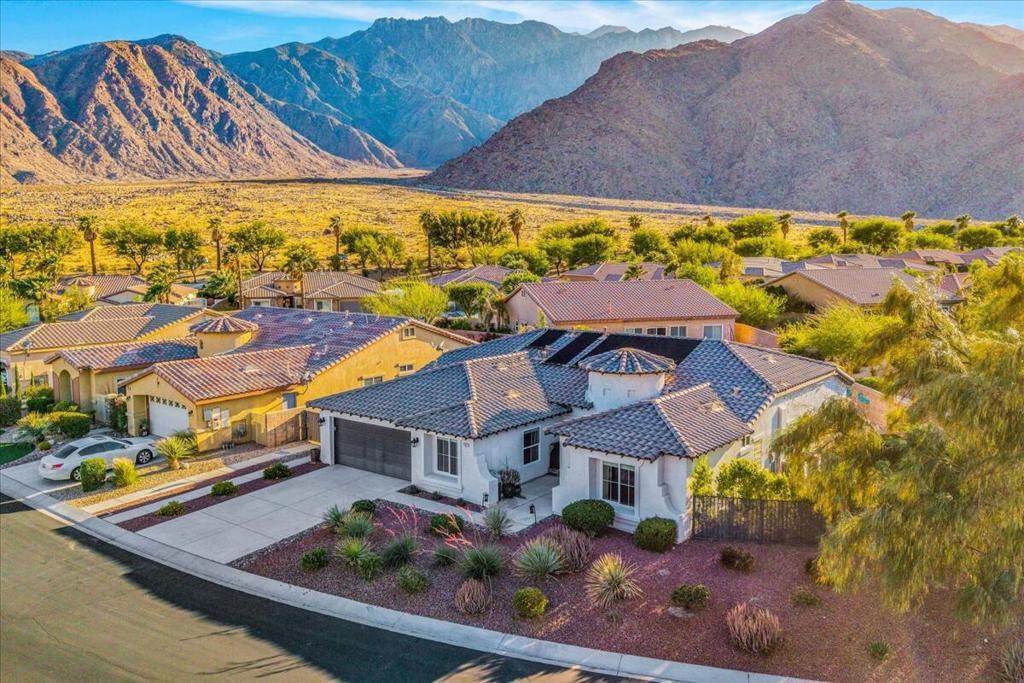 Discover community of Mountain Gate, at the base of Mt San Jacinto, in iconic Palm Springs, California. Home situated on oversized, corner lot with gorgeous desert landscaping. Inviting open courtyard beckons you into this showpiece. Modern-style glass inset front door. High ceilings. Large windows & sliding glass doors create an indoor/outdoor experience and frame stunning views of Mt San Jacinto and Palm Springs Aerial Tramway! Open floor plan is perfect for entertaining. Gourmet kitchen boasts LG stainless appliances, granite counters & backsplash, oversized island + breakfast bar & walk-in pantry--so much counter & cabinetry space! Great room with unique fireplace wall and large media niche area. Adjacent formal dining (or use as den/office). Backyard designed for enjoyment & relaxation! Large free-form pool with custom waterfall spa. Enhanced by Alumawood patio structure with inset lighting, concrete hardscape, mature plantings and side yard with lush faux turf and inset brick paver patio--over 10,000 SF lot! Primary suite features a spa-like bath and walk-in closet with access to backyard through slider. Front suite has separate entrance & it's own mini-split HVAC system for year-round individualized comfort (ideal as an attached casita). FOUR bedroom, three bath home is brimming with countless upgrades that enhance its allure & appeal, creating an atmosphere of luxury and sophistication. Remodeled baths offer designer tile showers & granite plus motion & humidity sensors; wood plank-style porcelain tile in bedrooms, oversized diagonal tile in main living areas; upgraded fixtures, lighting and finishes throughout. ALSO, dual Lennox top-tier HVAC systems. Paid solar pool heating system and leased solar panels for even more energy efficiency. Newer pool equipment. Home also has EcoWater softener and smart garage system with camera and Amazon delivery capability. PLUS gated RV parking. Mountain Gate offers multiple community pools/spas, tennis courts, sport courts, parks and more! Amenity rich location offers easy access to hiking trails, community park, Palm Springs Aerial Tramway, and downtown Palm Springs (with its international airport, world-class dining, shopping, and entertainment) all just minutes away. Move-in ready. Enjoy interior spaces, lounge outdoors, stargaze--this property is the IDEAL place to call HOME! Stop searching & START living!