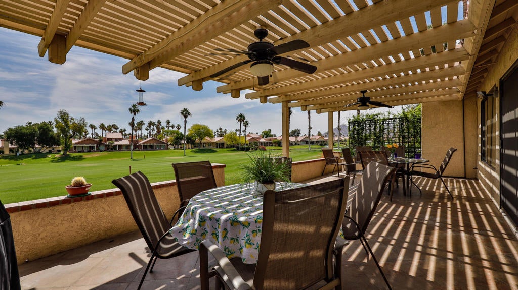 Located in the highly regarded Oasis Country Club, this two-primary suite, three-bath residence features a bright, open layout with abundant natural light and tasteful updates throughout. The oversized southeast-facing patio--ideal for shaded afternoon relaxation--overlooks the golf course and offers sweeping mountain views, making it perfect for entertaining. A finished floor two-car garage adds both convenience and visual polish.Just steps from one of the community's 18 pools and spas, this home also offers excellent potential as a seasonal rental, combining comfort, location, and resort-style amenities.Residents enjoy access to an 18-hole executive golf course with 22 lakes, a Ted Robinson-designed putting course, driving range, and practice green. Additional amenities include a lighted stadium tennis court, two lighted pickleball courts, a fitness center, dog park, and a vibrant clubhouse offering both fine and casual dining, a lounge with course views, a Grille Room, card room, and lending library.Blending privacy, versatility, and a prime position within the community, this home is a standout opportunity in the heart of Palm Desert.