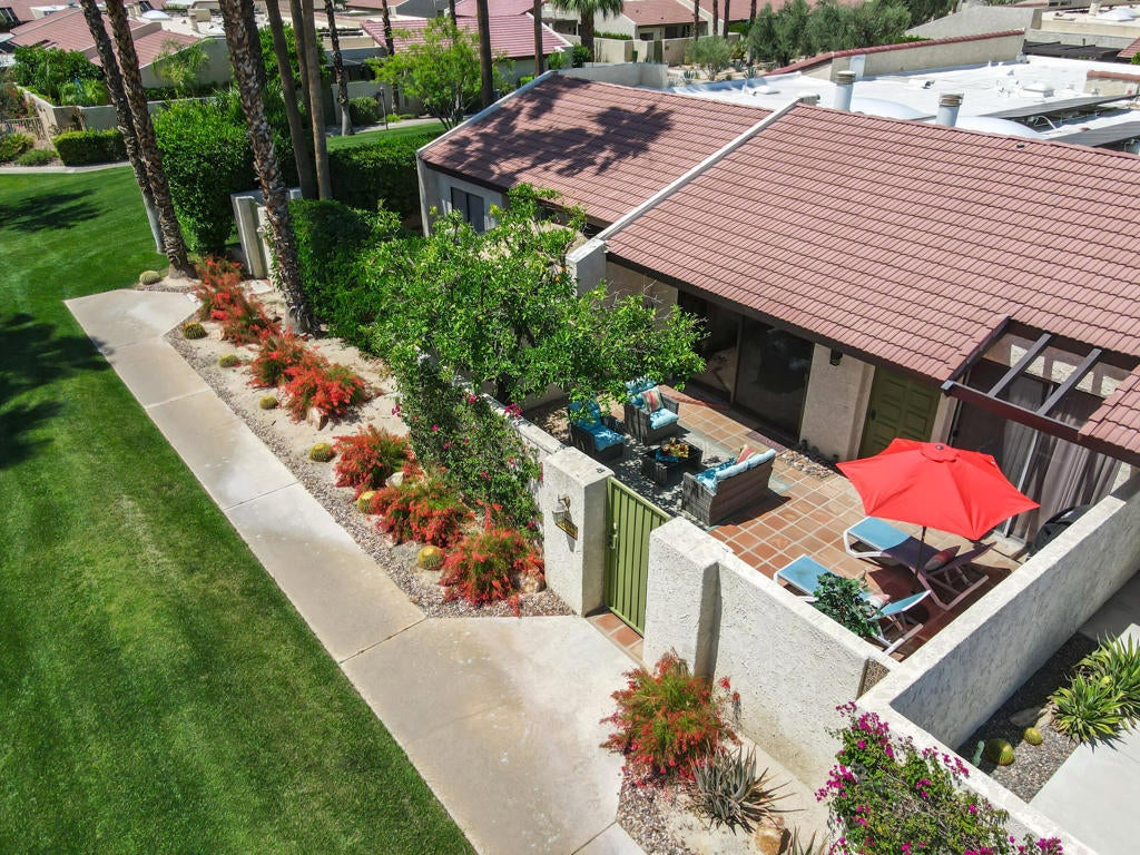 Welcome to Palm Regency - the heart of Palm Springs living! This beautifully situated condo offers one of the best locations in the community--just steps from the pool and clubhouse, with a serene greenbelt right outside your private patio. With no front-facing neighbors, the home is filled with natural light, creating a bright and inviting atmosphere both inside and out.Enjoy 1,595 square feet of single-level living with soaring ceilings and an ideal layout featuring great separation of bedrooms--perfect for privacy and comfort. Interior highlights include upgraded tile flooring, renovated bathrooms, and numerous thoughtful enhancements throughout. A single-car garage and additional adjacent parking spot adds convenience, and there's no street noise to disrupt your peace.This home is just a short walk to vibrant downtown Palm Springs, putting world-class dining, shopping, and entertainment at your fingertips. With a solar lease, sellers total electric costs average just $171/month--a smart and sustainable bonus.Palm Regency residents enjoy access to two large resort-style pools, pickleball and tennis courts, and beautifully maintained grounds--all in a premier central Palm Springs location.Don't miss your chance to own a slice of the Palm Springs lifestyle in one of the community's most desirable spots!