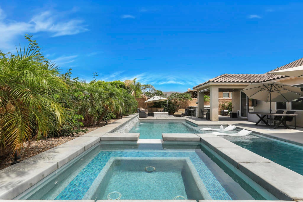 Welcome to 41153 Danforth Court, a spacious 3-bedroom, plus a Den 2-bathroom home nestled in the desirable gated community of Foxstone in North Indio. This 2,526 sq ft residence offers a thoughtfully designed open floor plan, ideal for both comfortable living and entertaining.Upon entry, you're greeted by a generous entry that takes you to the living room that seamlessly flows into a formal dining area. The heart of the home is the expansive kitchen, featuring granite countertops, a central island, stainless steel appliances, and ample cabinetry, all adjacent to a cozy family room with built-in shelving and fireplace.The master suite is a private retreat, complete with a spacious walk-in closet and a well-appointed en-suite bathroom. The additional bedrooms are generously sized, offering flexibility for guests, a home office, or creative space.Step into your dream backyard oasis! This exceptional property features a custom 18' x 35' pool with a 7' x 7' raised spa, stunning water features, therapeutic calf and foot jets, and dual 400K BTU heaters for fast heating. Control every feature--including lighting, salt system, and landscape lighting--with the state-of-the-art IntelliCenter system via app or indoor panel. The backyard is an entertainer's paradise with a built-in BBQ, pizza oven, firepit, and Bluetooth-enabled Vista Outdoor sound system. For RV enthusiasts, enjoy a dedicated 47' x 15' pad with 30-amp hookups and sewer. Additional upgrades include a climate-controlled garage (mini-split), and beautifully mature landscaping. A rare blend of luxury, function, and entertainment-ready living! Call today for your private viewing!