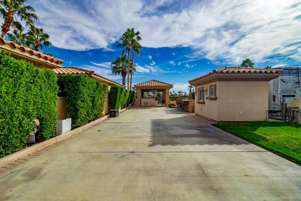Lot 166 at Motorcoach Country Club is a prime golf course property offering stunning views and a serene outdoor living experience. Relax on your patio as waterfalls cascade into the nearby waters, with boats gliding by in the evenings--all from the comfort of your private retreat. Just steps from the clubhouse, main resort amenities like pickleball, tennis, pool, spa, on-site restaurant, bocce, and the practice green, this lot provides unmatched access to everything the resort has to offer. The lot features a casita with a bathroom and shower, and extra storage. The BBQ island with bar seating makes outdoor dining easy, and the lot also includes a washer and dryer. A solid roof shade structure with overhead heaters ensures year-round comfort, while the gas fire pit provides a cozy spot during cooler nights. A large awning extends the outdoor space, and an above-ground spa offers a perfect place to relax and enjoy the beautiful surroundings. Motorcoach Country Club exclusively accommodates Class A motorhomes from 30' to 45'. Due to zoning, on-site properties are not considered dwellings, and overnight stays inside them are not allowed. MCC Food & Beverage minimum is $2,080 per year, due October 1st for use during the November-April season.