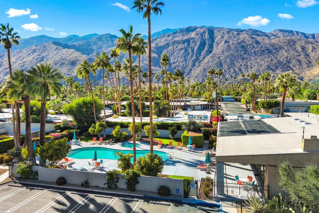 Welcome to Villa 75--an inviting end-unit residence tucked within a beautifully maintained, gated community just minutes from the vibrant pulse of downtown Palm Springs. This fee-simple condo (you own the land) blends iconic mid-century charm with modern comfort in a location that's hard to beat. Step inside to a bright, airy interior where clean lines and crisp finishes create a timeless aesthetic. The open-concept living and dining areas flow effortlessly to a private yard with sweeping westward views of the San Jacinto Mountains--perfect for morning coffee or sunset cocktails. As an end unit, the home enjoys enhanced privacy and a tranquil, relaxed ambiance. Resort-style amenities await, including a sparkling saltwater pool, spa, sauna, fitness center, clubhouse, tennis and pickleball courts, and EV charging stations. One covered parking space is included, along with ample guest parking for visitors. Located in the sought-after Ramona Villas community, Villa 75 places you just moments from downtown Palm Springs' renowned shopping, dining, galleries, and airport. Whether you're looking for a full-time residence, a weekend escape, or a savvy investment opportunity, this stylish condo delivers Palm Springs living at its finest. A variety of photos are virtually staged.