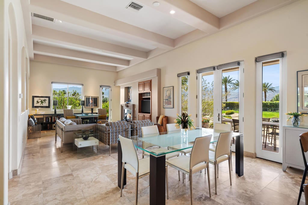 Developers original model home is situated on the most sought-after lot in Villa Portofino, offering unobstructed south-facing mountain views and exceptional privacy with no rear neighbors and open space with a tranquil pond and stream to one side. Located just steps from the side entrance to the clubhouse, enjoy effortless access to the pool, spa, fitness center, bistro, on-site movie theater, and more--no need to drive!Built with superior craftsmanship, this two bedroom plus den Tuscan-style residence features an old-world clay tile roof, covered porches and loggias with stone columns, soaring trey and beamed ceilings, 8' French doors and windows, and high-performance LOE insulated glass with wood interiors and aluminum-clad exteriors--designed for both beauty and energy efficiency.Interior highlights include a grand foyer, travertine flooring, wet bar, two gas fireplaces, bull nose corners, designer paint, solid maple cabinetry, eight-foot ''Italian Design'' solid core interior doors and top-of-the-line Samsung glass-panel appliances in your kitchen. The spacious primary suite offers a soaking tub, separate shower, and custom closet organizers. Almost new appliances and HVAC were installed in the last two years. Additional features include R-38 insulation throughout (including garage), a private driveway, and a two-car side-by-side attached garage. Guest parking is just steps away.Nestled in a quiet cul-de-sac, this is truly one of the best homes in the Desert's premier 55+ community. Villa Portofino offers a luxurious clubhouse with fine dining, bar, yoga studio, concierge, billiards room, card room, library, and more--plus a full calendar of social events and activities. Conveniently located near Eisenhower Medical Center, El Paseo, golf, dining, shopping, and the McCallum Theatre.