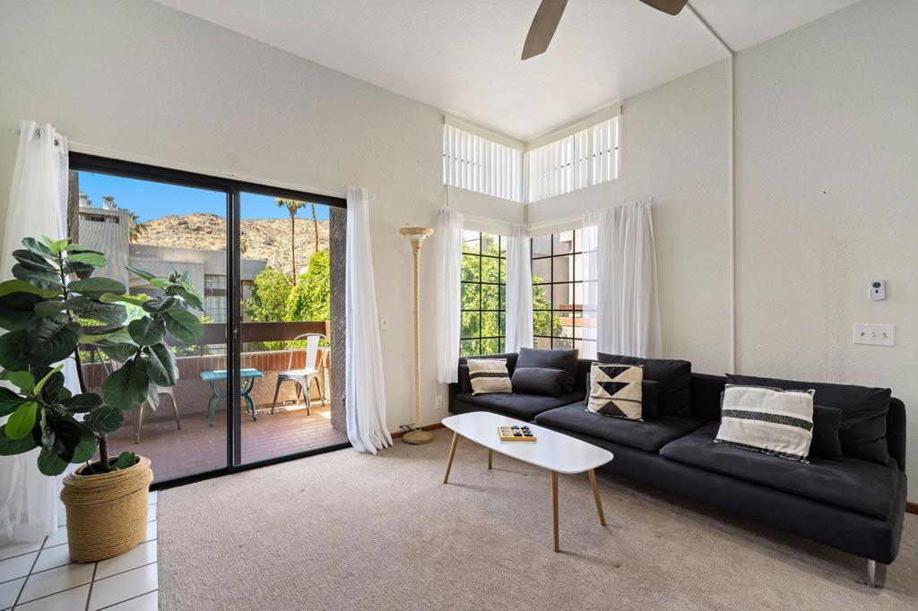 Located in South Palm Springs, this 2 bedroom, 2 bath condominium is ready to be your next home, or investment property! Enter into the Living Room with cozy fireplace and mountain views out the second floor balcony. The open floorplan includes dining area and open kitchen. There are 2 full baths. Enjoy the large Primary bedroom with a walk-in closet and private balcony. The seond bedroom has ample space and can be used as an office or workout room. Stacked laundry is conveniently tucked in a closet. Additional features are the owned SOLAR 10 panels (Renova) and new A/C (Lennox 3 ton). HOA includes a gated community and 2 pools/spas and clubhouse. Broker/Agent does not guarantee the accuracy of the square footage, lot size or other information concerning the conditions or features of the property provided by the Seller or obtained from Public Records or other sources. Buyer is advised to independently verify the accuracy of all information through personal inspection and with appropriate professionals. Information is deemed reliable but not guaranteed.