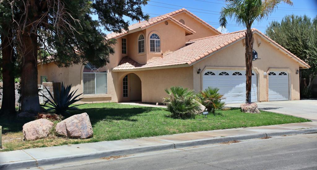 Great opportunity to own a two-story home in the city of Indio with No HOA and No Rental Restrictions. This property is perfect to call home, vacation home or as a short term rental. With TLC this home can have great potential. Home offers 2399 sq. ft. with four bedrooms two bath. Main floor has formal dining and living room, family room with cozy fireplace, breakfast nook, spacious kitchen, laundry room and two bedrooms and full bath. Spacious master bedroom with walk-in closet is located upstairs with large master bathroom that offers dual sinks, tub and separate shower. Third guest bedroom is located upstairs with walk in closet. There's also a bonus sunroom off of the family room and three car garage. Perfect location to restaurants, shopping, golf courses, and the famous Coachella Fest, Stagecoach, Polo grounds. Buyers to verify city short term rental requirements. Images are from a prior listing and may not represent the current landscaping condition. Updated photos coming soon. Buyers are advised to conduct their own due diligence regarding rental restrictions with the city of Indio.