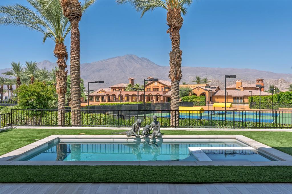 Step into effortless sophistication with this impeccably crafted 3-bedroom, 3.5-bath Villa in Andalusia Country Club, prominently positioned on a premium lot just a short stroll from the clubhouse. Capturing sweeping 180-degree views of the Santa Rosa and Coral Mountains, this 2,634 sq ft home is designed for those who value comfort, style, and harmonious indoor-outdoor living. A private detached casita with its own entrance offers ideal accommodations for guests. Inside, clean architectural lines and natural light define the open-concept layout, while expansive glass pocket doors open to a covered loggia that invites alfresco dining and relaxed lounging. The gourmet kitchen is both functional and refined, appointed with sleek cabinetry, top-of-the-line appliances, and a generous island for casual entertaining. The primary suite offers a tranquil sanctuary with dramatic mountain views, an elegant spa-style bath, and a spacious walk-in closet. Outside, a resort-style pool and spa create a private escape, perfect for soaking in the beauty of the desert landscape. An owned solar system adds efficiency to this thoughtfully curated home. Come live the life you've always imagined!