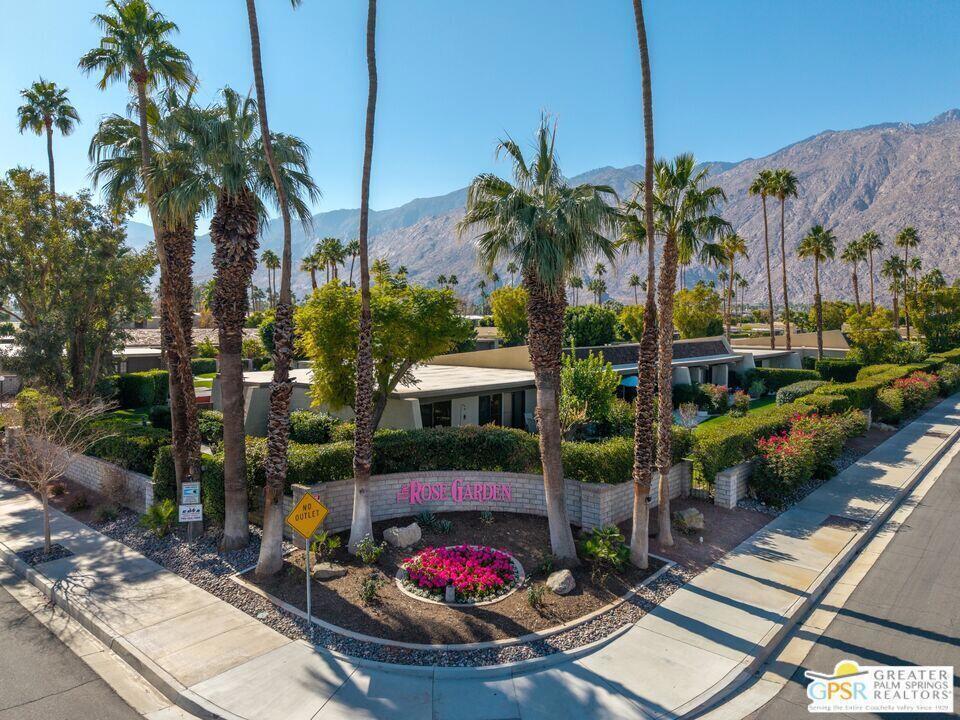 Seller offering $20,000 credit at this price to help make your desired improvements! Welcome to this beautifully designed 3-bedroom, 2-bath home offering over 1,600 SF of thoughtfully curated living space. Enjoy south facing mountain views in very large private courtyard and patio just steps from the sun-drenched pool, spa, and tennis courts. The modern kitchen features quartz countertops, a stylish seating bar, and sleek appliances complemented by modern white cabinetry. The adjacent dining area seamlessly flows into a spacious living room with a cozy fireplace and stunning views of the private patio and surrounding mountains. Each bedroom is generously sized, especially the primary suite, which boasts a walk-in closet plus an additional closet for extra storage. At the heart of the home, a serene outdoor atrium provides the perfect spot for fresh air and quiet relaxation. Located in the sought-after Rose Garden community in central Palm Springs--designed by renowned architect Donald Wexler--this home offers modern sensibilities paired with classic mid-century architecture. Residents enjoy resort-style amenities, including multiple tennis and pickleball courts, sparkling pools, and inviting spas, all designed to capture panoramic mountain views and the famous Palm Springs sunshine. Experience the perfect blend of style, comfort, and resort living--just a pleasant walk or short bike ride to vibrant downtown Palm Springs.
