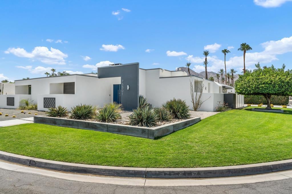 Located south of Hwy 111 in the quiet Rancho Palmeras Estates, this stylish Contemporary Modern 3BD/4BA home (including an outdoor bath) offers exceptional privacy, panoramic views of Mt. Eisenhower, and a central saltwater pool framed by a U-shaped floor plan. Move-in ready, the home features numerous upgrades, including dual newer HVAC systems, an energy-efficient foam roof with reflective glass, thermal pane windows, smooth coat stucco, porcelain tile flooring, and modern finishes throughout. The open-concept layout includes a spacious great room with wet bar, formal dining, and a wall of glass that opens to a resort-style backyard. The chef's kitchen showcases a Taj Mahal quartzite island and Quartzite countertops, premium KitchenAid appliances, and flows into a cozy den/TV lounge with access to the outdoor living area, stamped concrete, and upgraded landscape lighting. The serene primary suite offers a walk-in closet and spa-like bath. Two guest bedrooms, each with private outdoor access, provide flexible accommodations. Additional highlights include new ceiling fans, garage storage, and a built-in Murphy bed that allows a guest room to double as a home office. Professionally landscaped front and back with energy-efficient lighting and desert-friendly design. Experience modern desert living at its finest--schedule your private tour today!
