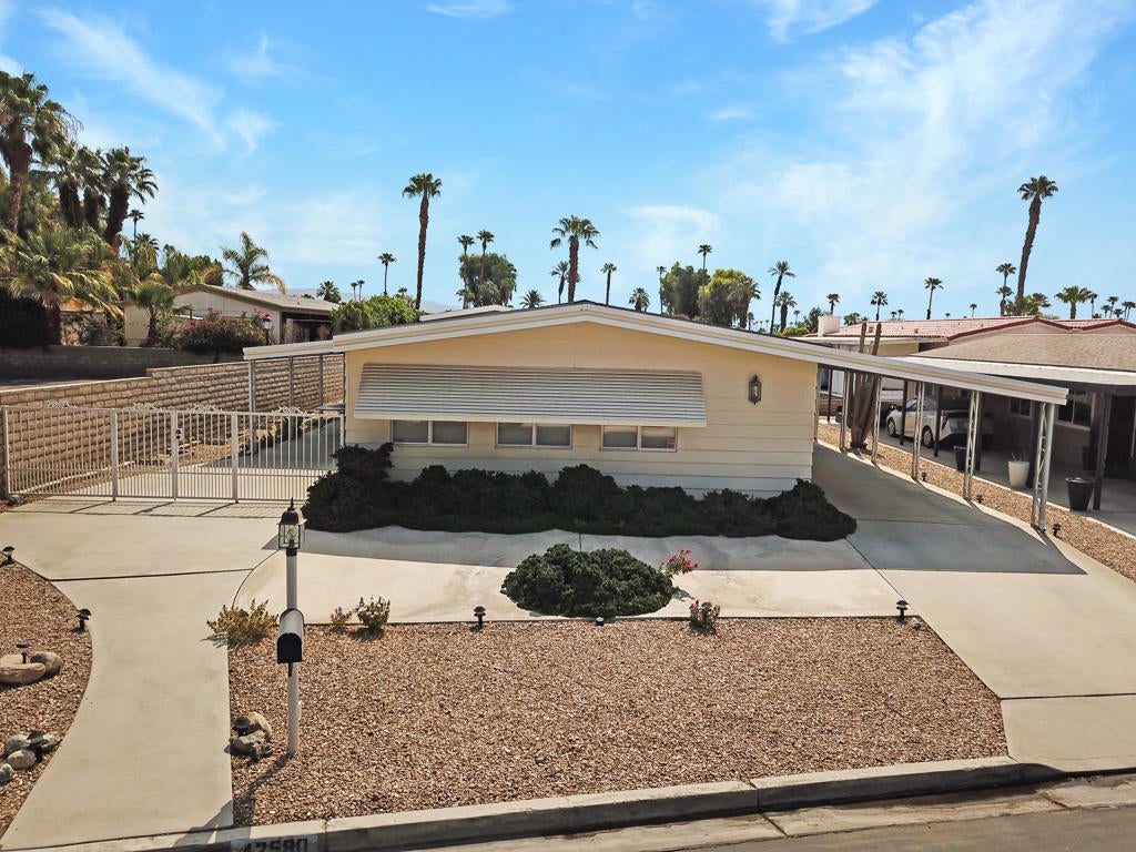 Come an Enjoy the Lifestyle at Portola Club where you can Play Golf on the 18 Hole, Par 3 Course, Swim in the Three Pools & Spas, Play Pickle Ball or Tennis, or just Walk your Dog to the Dog Park or Pond! This 55+ Gated Community has so Much to Offer! This Beautiful Home is located Directly Next to the Clubhouse with Many Activities with a Pub, Billiard Room, Library and a Large Dining Facility. The Primary Bedroom is located at the rear of the home for Ultimate Privacy, Spacious Closet, complete with En Suite Bath. The Guest Bedroom also has an Attached Full Bath. An Updated Kitchen Features Granite Counters, Oak Cabinetry, Newer Appliances and Casual Bar Top Dining, all Open to the Great Room. A Formal Living and Dining Room Showcases Tastefully Appointed Interior Spaces that Bask in the Natural Light. There is a Two Car Covered Carport with a door leading into The Laundry Room that can double as an Office or Hobby Room. The Exterior Patio faces North with Partial Mountain Views. Come joint the fun at Portola CC with low HOA of $440 per month which includes FREE Golf, Cable & Wifi, Trash and a Calendar full of Events and Activities. This is one of the few Country Clubs where You OWN the LAND!