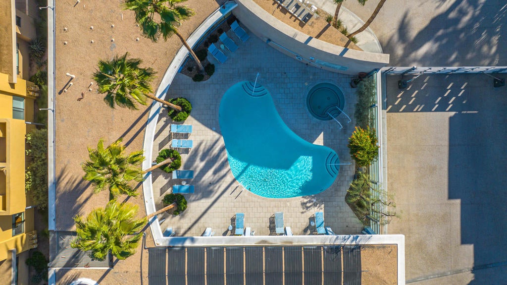 You're invited to this attractively updated 2 bed, 2 bath condo in prime Palm Springs at the gated community of Biltmore Colony. As you step into the light-filled tower, find an open and comfortable living space, with thoughtful improvements throughout, including a uniform tile floor tying the bedrooms and living area together and windows that frame the sky and beyond.The kitchen features convenient bar seating and ample counter space for meal preparation and a dining area that connects to an expansive outdoor space; among the models, this features the largest of the balconies. The primary suite also connects to the outside and with multiple seating areas, becomes an extension of your living area. A south-facing second bedroom, which doubles as a bright office space, is perfect for those who work from home or need a creative sanctuary. The location within the community is exceptional away from noise - you're just steps from the clubhouse and its amenities, making it easy to remain active and enjoy the Palm Springs lifestyle. The HOA membership includes access to a gorgeous pool and fitness center, water, trash, common area and roof maintenance. Take this opportunity to be in sought-after South Palm Springs, convenient to Smoke Tree Village with numerous restaurants and boutiques.