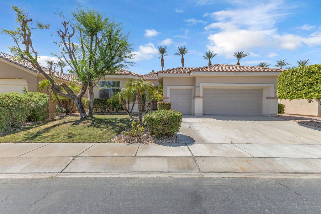 Welcome to Your Dream Home in Sun City Palm Desert! Discover the lowest-priced Monterey floor plan (2BD + Den) perfectly situated in the esteemed 55+ guard-gated community of Sun City Palm Desert. This charming abode is conveniently located between the Lakeview and Sunset View clubhouses, placing an array of amenities and engaging activities right at your fingertips. Prepare to embrace a new chapter of comfort and ownership, all while enjoying incredibly low HOA fees and a multitude of community features designed for an enriched lifestyle! As you approach this inviting residence, you'll find a landscaped, gated front courtyard that enhances its curb appeal and offers a private retreat for relaxation. Stepping inside, you'll be captivated by the spacious, open-concept layout, adorned with tile flooring throughout the main areas and bathed in natural light. High ceilings enhance the inviting ambiance, making this home ideal for entertaining. The expansive great room seamlessly flows into the elegant dining area, setting the perfect stage for gatherings. The chef's kitchen is a culinary oasis, featuring sleek Corian countertops, a generous island, a handy breakfast bar, and a sunlit nook--perfect for morning coffee. A large pantry adds convenience for all your culinary adventures. Retreat to the luxurious primary suite with direct access to the tranquil west-facing rear yard, where serene evenings by a soothing fountain await, framed by vibrant Bougainvillea. The suite includes a spacious walk-in closet and a spa-like bathroom with dual sinks, an oversized tub, and a separate shower. Your guests will enjoy the privacy of their own en-suite bath and access to the front courtyard. The flexible utility room can easily become an office or extra guest space.Complete with a two-car garage and a dedicated golf cart garage (golf cart included!), this property offers the ultimate convenience for exploring the scenic community.Sun City Palm Desert is celebrated for its extensive amenities, including multiple golf courses, tennis courts, sparkling pools, cutting-edge fitness centers, and diverse social clubs.