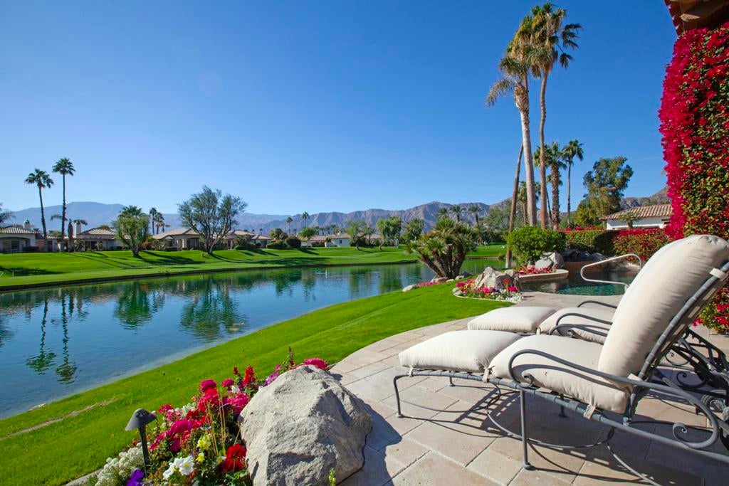 Set before a lake with panoramic South-facing Santa Rosa Mountain views, this incredible Hacienda 2 Plan is the idyllic lakeside setting for seasonal or year-round residents. Set well back from the street and accessed through a private courtyard entry with custom pavers, the home features numerous entertaining and living atmospheres that all take advantage of the incredible lake, golf course and mountain views. Features such as marble flooring, shutters, crown moulding and rich wood millwork create a tone of quality while volume ceilings and large walls of glass invite the outdoors and deliver an open and airy feel. An entertainer will appreciate the custom wetbar and adjacent formal dining room while steps away, one room has been converted into a billiard parlor that overlooks the lake and opens directly to a custom putting green. The chef's kitchen features a large center island, extensive use of granite, lake views and updated appliances - It's here you also find a waterfront morning room that's great for small meals or reading the paper. The main bedroom suite is ultra private and offers shutters, moulding and an incredible media area - steps away the main bath has a jetted tub, dual sinks, private commode and a massive walk-in closet. Additional features include a covered outdoor living area with fireplace and extensive nocce decking; freeform waterfront pool and spa with spectacular mountain views, bbq; detached guest house. New concrete garage floor & epoxy finish. Back on the Market, no fault of the sellers