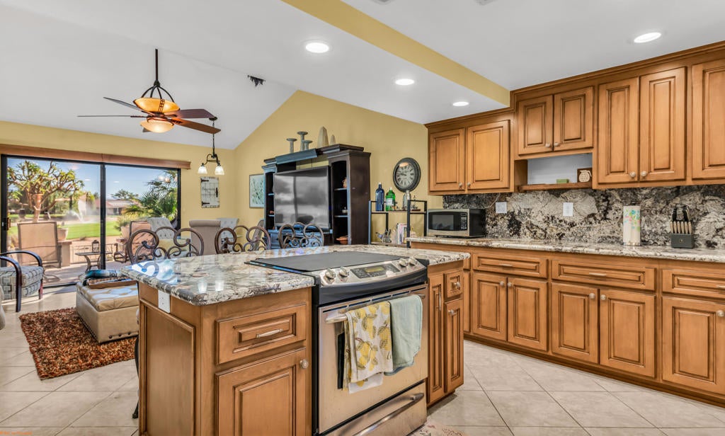 Beautiful Golf Course Retreat in Palm Desert Resort Country ClubThis spacious home features vaulted ceilings and stunning golf course views, along with an attached two-car garage. The highly upgraded kitchen showcases stainless steel appliances and luxurious granite countertops that extend seamlessly up the backsplash.The expansive primary suite offers patio access and a custom-designed walk-in closet. Solar tubes enhance the natural light throughout, creating a bright and inviting atmosphere. Step outside to relax and enjoy the serene eastern views overlooking the 11th fairway -- once you see this home, you'll never want to leave!Offered turnkey furnished per inventory.Located within the gated community of Palm Desert Resort Country Club, residents enjoy 24-hour guard-gated security and a wealth of amenities including 20 pools and spas, 7 tennis Courts and 28 Pickle ball courts, a clubhouse with restaurant, and more. HOA dues include cable, internet, and trash service.