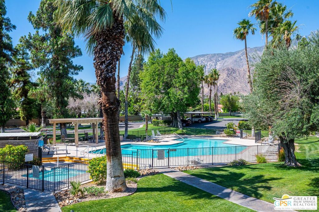 Newly updated first floor condo on Fee Land (you own the land) with Mountain Views at Palm Springs Villas 1, minutes to Downtown Palm Springs. Great for weekend getaway, year round resident or rental property. This 1 bedroom 1 bath unit features new ceramic tile flooring throughout, freshly painted, open living room with sliding glass door to covered patio. Lots of space for your dining room table/desk, updated kitchen with stainless steel appliances, Refrigerator, Dishwasher, Stove/Oven and Microwave, Quartz counter tops, full size pantry with barn door feature. Private bedroom with large closet, mirrored closet doors, ceiling fan, mounted TV in bedroom. Beautifully updated bath with rainfall shower head, unique pebble like shower flooring. Private covered patio. Pet Friendly. Community amenities include tennis, multiple big sparkling pools & refreshing spas and laundry room near by the unit, carport parking, lots of guest parking and HOA includes water & trash. Park like grounds with lush landscaping, close to Tramway and many Restaurants and Stores including Agua Caliente Casino, Starbucks, Palm Springs Museum, Lulu California Bistro, El Patron, Tropical, Bongo Johnnys, Trio Restaurant and many, many more.........Low HOA and ready to go. No short term rentals