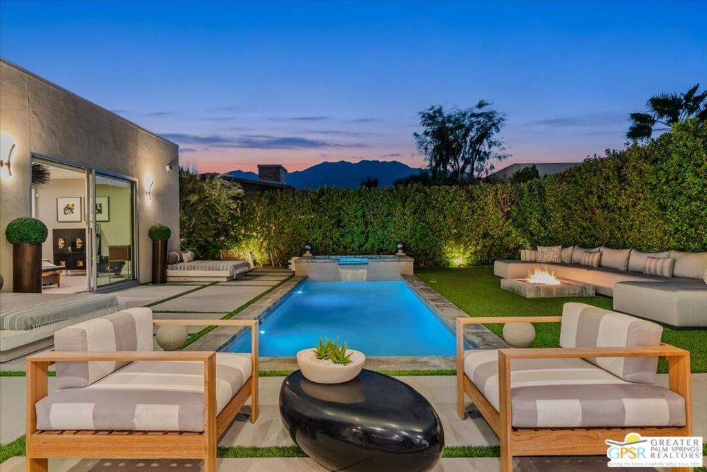 This extraordinary designer home with breathtaking mountain views is one of the finest in all of Escena. This beautiful home is being offered fully furnished inside and out with OWNED SOLAR. This customized and highly upgraded 3 bed/3 bath home will dazzle you from the moment you enter. The great room has wide open spaces, high ceilings, designer light fixtures, stone on the walls, counters and floors with oversized windows that frame the panoramic views of the mountains! The gracious primary suite has direct outdoor access, a gorgeous custom closet, and a bathroom that feels like your own spa. In addition, there are 2 guest suites linked by a sleek and contemporary bath. Some of the upgrades include automated window coverings, smart home with central hub, designer light fixtures, salt water pool/spa and a soft water system. Close to the Escena Golf Club and Grill. Don't miss your chance to have it all!