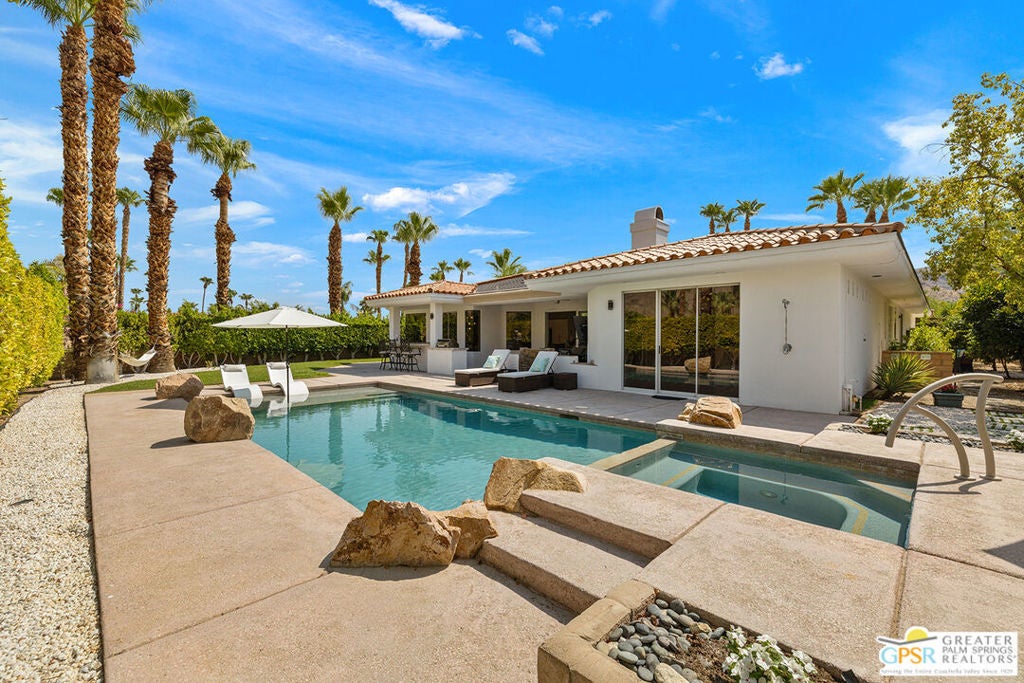 Looking to own a CASH-GENERATING SHORT-TERM VACATION RENTAL with PANORAMIC MOUNTAIN VIEWS? Check out this ultra-private 3 bed, 3 bath FRESHLY UPGRADED home located in South Palm Springs that is near hiking trails, two golf courses, and only minutes to downtown Palm Springs. Recent interior AND exterior designer and system upgrades including NEWLY INSTALLED PAID FOR SOLAR PANELS (36)! Additional highlights include the cul-de-sac location, light and bright west-facing Great Room with open floor, great separation of bedrooms, and a resort-style backyard that delivers 360-degree views of the surrounding mountains. This one is also priced in line with recent sales, too! You will love the large kitchen opening to the living and dining area that really show off the mountain views. The adjacent bar is the icing on the cake and will come in handy when entertaining friends and family. Outside, you will love the covered patio, built-in BBQ, refreshing pool with solar heater, and outdoor shower off the Primary Ensuite. Speaking of the west-facing Primary Ensuite, you will love the tall ceilings, mountain views, dual sets of sliding glass doors that open to the backyard, gas fireplace, walk-in closet, and a private ensuite bath with dual vanities, walk-in shower, and separate jetted tub. South-facing Junior Ensuite Two, which opens to a large outdoor patio, has a walk-in closet and a private ensuite bath with a shower/tub. On the other side of the house is Bedroom Three complete with views, built-in workstation, and an adjacent hallway bath with a walk-in shower. Inside laundry room and direct access to the attached three car garage. Tesla SUPERCHARGER for blackouts!