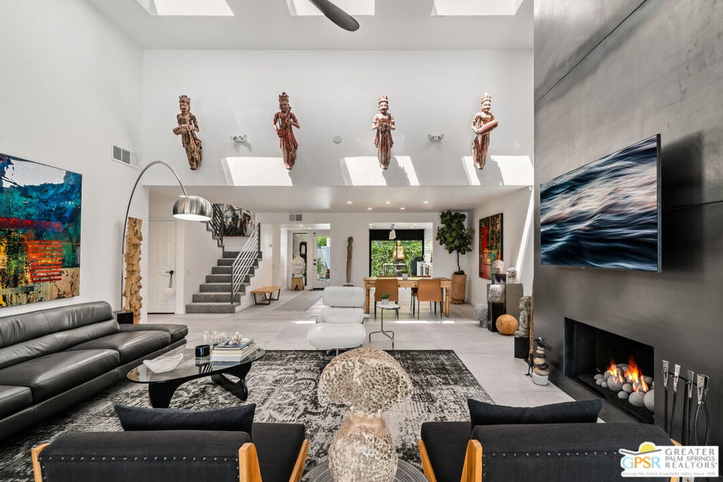 HIGHLY UPGRADED! Desert living at its best in this FEE simple (YOU OWN THE LAND) gated community of Vista Canyon located at the base of the mountains in the desirable South Palm Springs.This contemporary remodeled 3 bed 4 bath home is light bright and spacious. The main living room has cathedral ceilings with skylights allowing an abundance of natural light all year round. Your guests will enjoy gathering around the perfect Palm Springs sunken wet bar reimagined with custom shelving and a 15' steel fireplace that is a piece of art in itself complimenting the space.The redesigned chef's kitchen blend design and function offering a 48" GE Monogram Dual oven, Sub Zero refrigerator, microwave drawer, and wine cooler. Entertain your guests around the moveable kitchen island, which also serves as an eating area.The extra large primary bedroom has vaulted ceilings connecting to the re-envisioned ensuite bathroom with dual sinks, Italian tiled shower, free standing soaking tub with frosted glass barn door. The second bedroom is currently used as a den with ensuite bathroom including a stackable washer and dryer.The 3rd bedroom used as an office has an oversized deck with stunning mountain views.This designer home has a list of updates available, including all new windows, doors and 4 skylight. The outdoor space has custom gates w/ frosted glass to provide privacy to the owner. All new outdoor hardscape and landscape, this wrap around yard is mature, low maintenance and provides different vignettes for outdoor entertaining.Vista Canyon offers 2 Pools, 2 Spas, tennis courts and community viewing deck backing up to the mountains. Monthly dues are $635 and include cable/WIFI, landscaping and community gate. The complex is located 5 minutes away from downtown Palm Springs, with hiking trails close by and only blocks away from the Indian Canyons Golf Course.Price to sell this designer home offers timeless elegance and exceptional value. Call today for appointment to view.