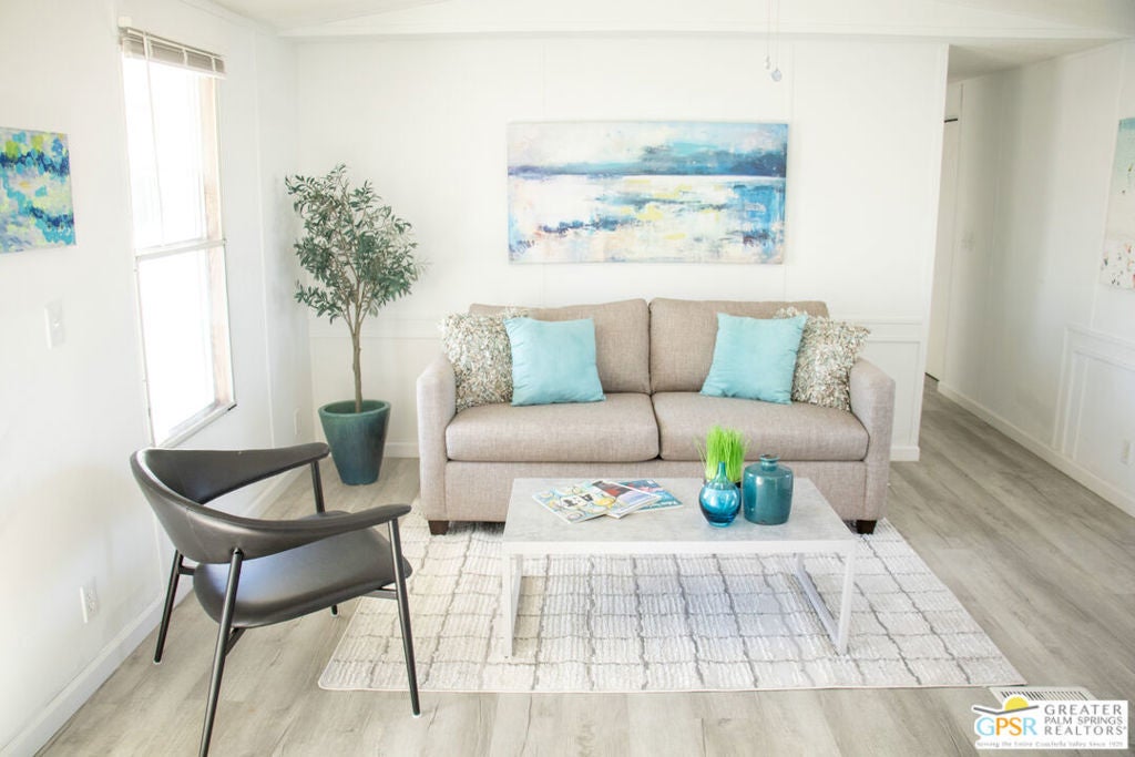 Welcome to Ramon Park, a resort-style community located in the heart of Palm Springs. You could not ask for a better community both in amenities and location. This meticulously maintained property is immaculate and includes a large clubhouse with a kitchen and banquet room, billiards, ping pong, outdoor shuffleboard courts, a fitness center, library, laundry facilities, and a huge swimming pool that is always sparkling. This is a 55+ community that has an active community feel with social gatherings, while also allowing for total relaxation. Directly across the street is a shopping center with Ralphs, Starbucks, several food options, dry cleaning, and so many other businesses. This community is located in one of the most desirable parts of Palm Springs, allowing you to be close to all that downtown has to offer, without being stifled by the downtown crowds and traffic. This two bedroom home has been nicely updated with new flooring throughout, a contemporary and functional new kitchen and bathrooms, dual window panes for added peace and serenity in the home, and a ton of natural light that fills the home with joy. You truly will feel like you are living a resort lifestyle in the Ramon Mobile Park.