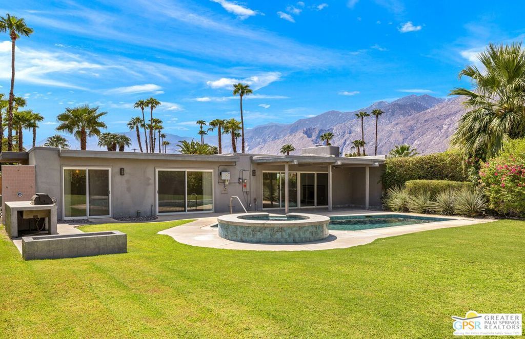 LOCATION + VALUE! Check out this Palm Springs contemporary with its clean lines and San Jacinto VIEWS! Gated privacy surrounds and a WOW FACTOR takes over poolside. Be it full-time, seasonal, or investment, we have a winner. SHORT TERM RENTAL permits are currently available for the Central Palm Springs neighborhood of Oasis del Sol. OWNED SOLAR is also in place! Heading out to the pool, you'll find a mix of conversation areas, built-in barbecue, fire pit, and tiled shower. The design of these elements honors the modernist lines of the home. A pool makeover in 2023 is another plus. Elevated spa with waterfall makes it all the sweeter. Flow is another plus as sliders open things up between the covered patio and the main living areas with its perfectly positioned fireplace. Take the Matterport VIRTUAL TOUR for a better sense. Oversized windows are a pleasant surprise in the dining area and stylish finishes are a theme for both kitchen and baths pairing beautifully with contemporary tile underfoot which is found throughout. Ensuite Primary with direct pool access features dual vanities, tiled shower, and walk-in closet with built-ins. Guest Bedroom #2 opens to a patio and shares a bath with Guest Bedroom #3. Laundry is located in the 2-car garage. At nearly 1/3 acres, there is room for growth in the years to come, maybe even a guest house? Proximity to the best of Downtown Palm Springs is key and you'll find it here. Walkability too. Enjoy it all!