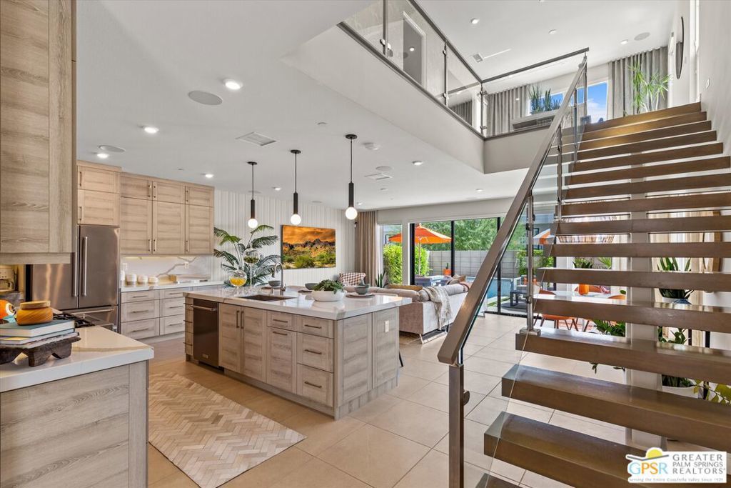 Welcome to this stunning high-end residence located within the exclusive Cody Place community in South Palm Springs. This popular Brody Elite former model home offers luxurious desert living within a gated enclave, boasting top-of-the-line upgrades throughout. Fully furnished, designer finished and appointed, and absolutely move in ready to enjoy. The home features exquisite wood and stone tile flooring, a dramatic floating staircase, custom lighting, and designer window coverings. The kitchen is a showstopper with an oversized quartz island, custom cabinetry, high-end appliances, and stylish finishes, making it perfect for entertaining. Enjoy seamless indoor-outdoor living with stacking sliders leading to a private courtyard with mountain views and a private spa with a fire feature. Both bedrooms offer private decks, ideal for soaking in the serene views. The spacious primary suite includes an oversized spa-like bathroom and a large walk-in closet. The guest rooms are also ensuite for ultimate privacy and comfort. Additional features include a loft-style office/den, soaring ceilings, abundant natural light, and a dramatic covered rooftop deck with panoramic mountain views, Palm Springs views, and views of Coachella Valley. Paid/owned solar with car charger in garage adds to the home's efficiency and appeal. Ideal as a primary residence, vacation home, or entertainers paradise. Outside the confines of your home, the community amenities include a recreational pool, a separate lap pool, a well-appointed clubhouse, fire features, an outdoor kitchen, and BBQ area, and a dog park. Conveniently located in South Palm Springs, you're just moments away from downtown Palm Springs, offering an array of shopping, dining, and entertainment options. Don't miss this opportunity to own a one-of-a-kind highly upgraded desert retreat.