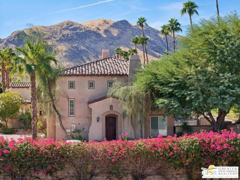 Welcome to 1721 Pintura Cir, a stunning 2-bedroom + den/office, 2.5-bath home nestled in the gated Pintura community of Palm Springs. This Tuscan-style, two-story, villa offers an open floor plan with high ceilings, abundant natural light and a cozy fireplace in the living room, perfect for relaxing evenings.. The gourmet kitchen boasts granite countertops and stainless steel appliances, ideal for entertaining. The spacious primary suite includes a walk-in closet, en-suite bath, and access to a private balcony with stunning mountain views. Step outside to your own private oasis featuring an intimate, sparkling spool, perfect for cooling off on warm desert days. Enjoy the serenity of your low-maintenance yard and outdoor living spaces. Conveniently located near shopping, dining, and top golf courses, this home offers the perfect combination of luxury, privacy, and prime Palm Springs living. Don't miss this opportunity to own your slice of desert paradise!