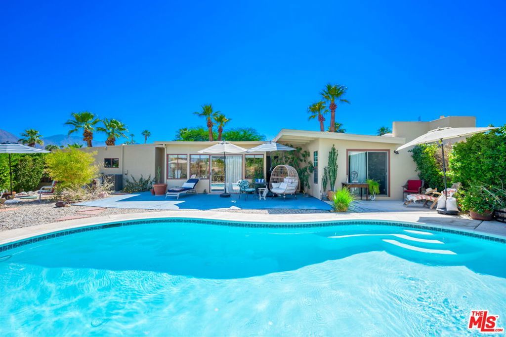 Discover this rare opportunity to own a Mid-Century Modern gem with incredible energy and light, perfectly sited on a prime .25-acre lot in the heart of sought-after South Palm Desert. This lovingly maintained home, has been cherished by the same family for over 50 years. Located just moments from the world-famous El Paseo Shopping District, often called the"Rodeo Drive of Palm Desert", this home offers easy access to top-tier dining, boutiques, galleries, world-class golf courses, hiking trails, and more. Whether you're a first-time buyer or an investor looking for a prime location, this home provides the perfect blend of tranquility and the vibrant Palm Desert lifestyle, all with no HOA fees. With its great bones, this immaculate post & beam home features a spacious living area with open floor plan living room, dining area, and kitchen, two en-suite bedrooms, a bonus family room, and a finished, air-conditioned 2-car garage perfect for a gym, studio, office, or playroom. Additionally, a private walled front covered patio expands upon the usable space to enjoy your oasis in the desert! The expansive private backyard, complete with a newly refinished swimming pool and patio spaces, is an entertainer's dream ideal for hosting gatherings or simply unwinding while soaking in the desert's iconic sunrises, sunsets, and panoramic mountain views. With a new roof, this move-in-ready home offers usable square footage substantially larger than recorded. Proximity to schools, The Living Desert Zoo + Gardens, and the best the Coachella Valley has to offer completes the package. This is your chance to own a true desert retreat. Schedule your private showing today!