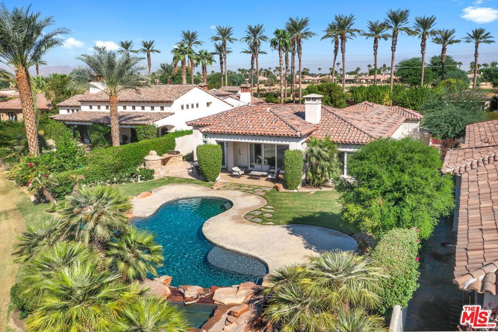Stunning custom fully furnished home with unmatched views in The Palms. Welcome to your dream desert retreat! This spectacular custom home is situated on one of the finest lots in The Palms, offering unparalleled south-facing views of the majestic Santa Rosa Mountains, perfectly framed by one of La Quinta's premier golf courses. Sitting on an expansive 14,000+ sq. ft. lot, this home blends luxury, comfort, and a seamless indoor-outdoor lifestyle. Designed with entertaining in mind, the open floor plan features a spacious living and dining area with large sliding French doors that open to a sprawling covered patio, where you'll find a built-in BBQ and bar. Perfect for hosting, the backyard oasis boasts an oversized custom pool, large grassy yard, and soothing waterfalls, creating an ideal setting for relaxing or entertaining guests. The primary suite is your personal sanctuary, offering direct access to the stunning backyard, where you can wake up to incredible mountain views and enjoy a quiet morning by the pool. An attached 1 bed, 1 bath casita provides the perfect space for visiting guests, ensuring comfort and privacy during their stay. This turnkey furnished home is ideal for those seeking the ultimate La Quinta lifestyle, whether you're looking for a full-time residence or a seasonal escape. With its unbeatable location, premium amenities, and breathtaking scenery, this property is a must-see for discerning buyers.