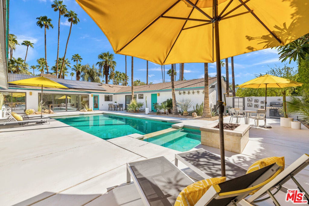 Ultra-private desert contemporary gem, set on a prime quarter-acre corner lot in the coveted Deepwell Estates of South Palm Springs, shines above the rest! Offering 2,935 square feet of classic Palm Springs vibes including an open floor plan, contemporary finishes, and floor-to-ceiling glass windows and sliders that flood the space with natural light. Step outside to the west-facing pool and spa, where premier views of Mt. San Jacinto create the ultimate backdrop for relaxation and entertainment. You will love the bright and airy kitchen that opens to the dining and living areas, all overlooking the private saline pool, spa, and an adjacent cabana. Talk about indoor/outdoor living! Each of the three junior en-suites boasts its own private, spa-like bath, with two suites featuring a kitchenette and private entrances, one of which is a detached casita. Bedrooms four, five, and six share easy access to a hallway bath with dual sinks and a large walk-in shower. The layout makes it ideal for large families, those who want to work from home, or savvy investors seeking an attractive rental opportunity. Pre paid solar system, attached two-car garage with ample additional parking, and best of all no land lease or HOA fees. Just minutes from Downtown Palm Springs' finest restaurants, shopping, and vibrant attractions. ALSO AVAILABLE FOR LEASE: SHORT TERM, SEASONAL, NEGOTIABLE. CALL LISTING AGENT FOR PRICING.