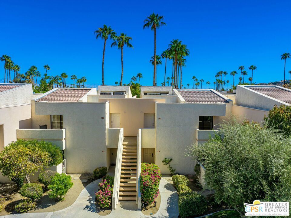 Stunning remodeled home in the sought after Versaille complex. Thoughtfully and tastefully re-done in 2020...this upper units kitchen boasts quartz countertops with glass backsplash...new stainless appliances....remodeled bathrooms...new American Heating and Air system...new Milgard sliders....washer and dryer in unit...the list goes on and on!...Centrally located across from Smoke Tree shopping center and across from the popular Purple Room this is the perfect location !!! Enjoy a well cared for home and attentive HOA whether this be a permanent home or desert retreat....(pictures are digitally staged)