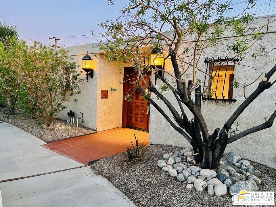 Discover a unique opportunity to double the lot size by purchasing MLS #24-460685. THIS IS A FIXER, NEEDS RENOVATION: Refresh this custom home, with a bit of imagination, this property can be brought back to its former glory. Key Features: 1) Private Courtyard: A gated courtyard offers privacy and sets the tone for seamless indoor-outdoor living. 2) Spacious Living Areas: High ceilings in the step-down living room create an open feel, with the space flowing directly onto the pool deck, featuring a spa in the backyard. 3) Stunning Views: Enjoy breathtaking desert sunsets and serene evening views from the comfort of your own oasis. 4) Two Large Bedroom Suites: Each suite boasts direct access to pool area and Roman style sunken showers, delivering vintage Palm Springs charm. 5) Bonus Studio/ADU: Original to the home, living room area is approximately 17' x 14' not including the bathroom and large closet plus additional space is available to add a kitchen. The home has a fantastic floor plan, ideal lot orientation, and generous outdoor spaces. While it has experienced some neglect, it presents an incredible canvas for the right buyer to re-imagine and revitalize. Bonus Opportunity: The adjoining lot to the south is also available for purchase. Combine the two lots to double your space and unlock even more potential.