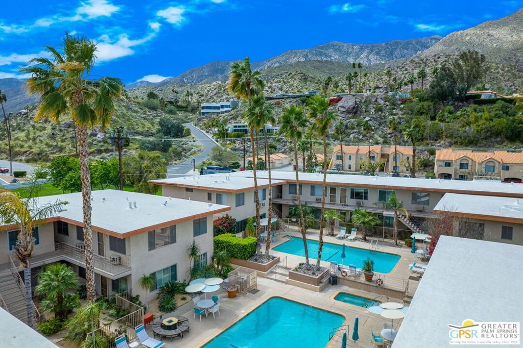 Incredible opportunity to own a newly remodeled, STR friendly condo in South Palm Springs on Fee Land (you own the land)! Unit #11 at Desert Skies is a beautifully renovated 1 bed, 1 bath, fully furnished, turn-key home. Upgrades include fresh paint, new flooring, baseboards, and upgraded lighting throughout. The kitchen boasts new cabinets, quartz countertops, modern appliances, and a striking backsplash. The spa-inspired bathroom features custom tile work, a new vanity, and updated fixtures. Enjoy comfort with a new electric panel, commercial-grade HVAC split zone system, and smart NEST thermostats. Electric remote-controlled smart blinds complete the sun-filled interiors. Located in the desirable Indian Canyons area, Desert Skies offers two pools, a spa, BBQ area, community rooms, and stunning mountain views. This complex allows short-term rentals of 14 days or more, making it the perfect investment property or personal retreat. Ready for immediate enjoyment just bring your toothbrush!