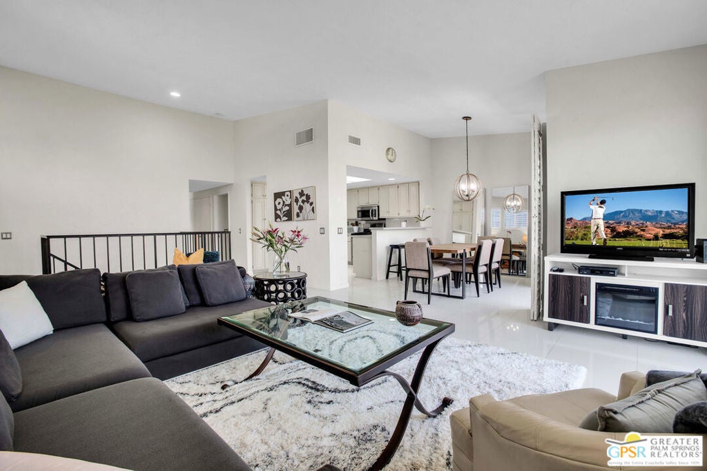 Best deal at PGA West! Home of the PGA Tour's American Express Tournament! An extremely quiet and rare end unit with pool & spa steps from the front door! Get ready to live the ultimate La Quinta lifestyle in this stunning, turnkey furnished condo at PGA West! Smells great and light and bright! With 2,129 square feet of luxurious living space, 4 spacious bedrooms (one of which is being used as a huge bonus room), and 2 bathrooms, this beauty can comfortably sleep up to a dozen guests. Perfect for hosting family, friends, or even a pool party! Nestled on the fabulous Jack Nicklaus Tournament Course, this bright and airy home features polished white tile floors, sleek white kitchen cabinets, and soaring ceilings. The living area is drenched in natural light, thanks to the upper windows and a wall of sliders. And that bonus room? It's a sun-soaked haven with windows on three sides ideal for a game room, guest suite, or your personal zen yoga studio. Step outside to deck and bask in the breathtaking views of the golf course and mountains. Fire up the grill and entertain to your heart's content! The master suite is your private retreat, complete with en-suite bath. PGA West, home of the American Express Golf Tournament, is packed with world-class amenities: six golf courses, a state-of-the-art fitness center, tennis and pickleball courts, and multiple clubhouses. Not into golf? No problem! Dive into the social scene with dining events, or relax by the community pool and spa so convenient - it's almost like having your own private pool! Convenience is king here! HOA dues also include internet and cable, roof and earthquake insurance, private security, landscaping, and painting. And you're just a hop, skip, and jump away from the Coachella Music Festival, Stagecoach, the BNP Paribas Open, and Old Town La Quinta's awesome restaurants and shops. PGA West offers four tiers of membership opportunity for golf, sports, dining and social activities. Don't miss out!