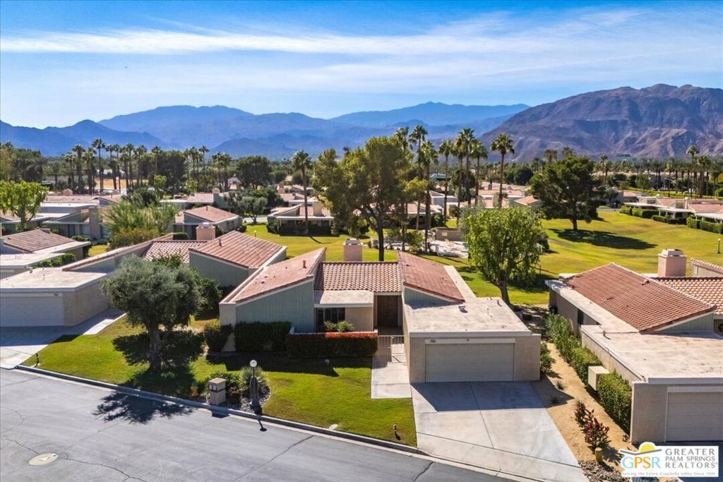 Beverly Hills meets the desert at Wilshire Palms, in the heart of beautiful Rancho Mirage. Discover your desert oasis in this 2115 square foot home with 3 bedrooms / 3 baths + den - the largest unit in the community. Marvel at the panoramic mountain views from the south and west-facing private patio with direct access from the Living Room, Dining Room, and Primary Bedroom. The spacious living room, complete with wet bar, vaulted ceiling, and gas fireplace is the perfect place to gather with family and friends for an elegant evening or casual get-together. This home is being sold furnished (per inventory list). Low-density Wilshire Palms features spacious greenbelts - Monthly HOA dues include 6 pools & spas, 3 tennis courts, 4 pickleball courts, Spectrum Internet & Cable package, and paid trash pick-up. The proximity to shopping and restaurants at The River and El Paseo, as well as the historic Sunnylands Estate, and world-renowned Eisenhower Medical Center, makes this the perfect home for year-round living or a vacation getaway. Don't miss this one!