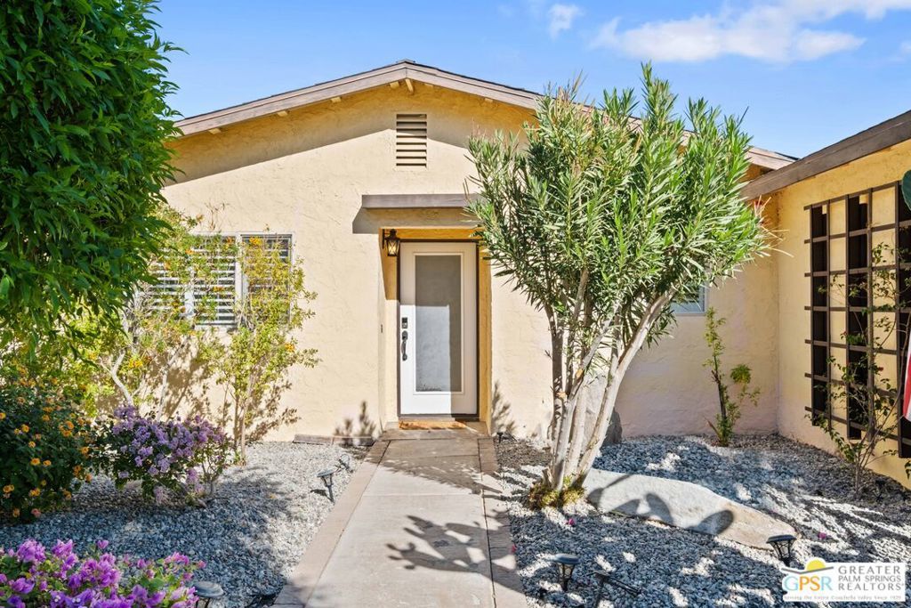 Welcome to your dream home in Desert Park Estates! This stunning property sits on a spacious 1/4-acre lot, offering privacy with block walls surrounding the perimeter. Recently refreshed with brand-new appliances, fresh paint, and plush carpeting, this 3-bedroom, 2-bathroom home is ready for you to move in and make it your own. As you step inside, you'll be greeted by a warm fireplace and elegant French doors that open to a generous patio and oversized backyard. Situated on fee land in the heart of Palm Springs, this home is a true desert gem. The front yard feature drought-tolerant landscaping, adorned with vibrant desert plants and shaded by mature olive trees.The backyard is a blank canvas, cleared and prepped for your creative vision, with an upgraded electrical panel and voltage ready for a future pool and enhanced outdoor lighting. Don't miss this incredible opportunity to own a beautifully updated home with endless potential in a prime Palm Springs location!