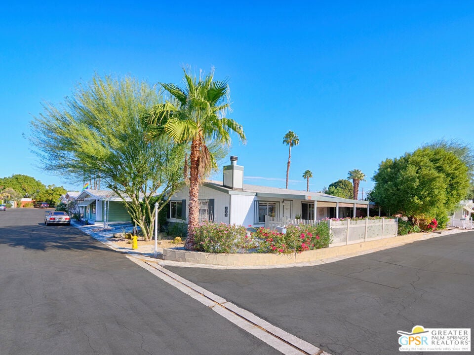 This well cared for manufactured home is priced to sell. This home features many interior and exterior upgrades including a remodeled kitchen, updated bathrooms, light fixtures, fans, flooring, custom window blinds throughout, even a level 2 EV charger. You will appreciate the open floor plan, cathedral ceilings, dual pane windows and beautiful flooring among its many features. A spacious master suite and over-sized master bathroom offers both comfort and convenience. There is also a TV room/Den that can become a 3rd bedroom. Smart features include a gas fireplace, ceiling fans, window blinds, sunshades, and a newer HVAC and water heater. Outside features a large covered patio with great mountain views and beautiful low maintenance landscaping (all on a drip system). There is also a custom built shed for tools and storage, and an attached garden shed with a covered potting bench. The park rent-controlled, has a clubhouse just down the street with gym, pool and spa. As an added bonus this home is available turn key ready as most furnishings and decor are available for purchase separately outside of escrow! With golf, shopping,cycling and hiking all near by, you can't go wrong with the quality and convenience this home offers. RENT CONTROLLED ($730.00 monthly) space includes water, sewer, trash, common area maintenance, and is in a prime location, just a short distance to Trader Joe's, Starbucks, and Target, and just a few minutes away from a myriad of shopping, dining, and entertainment options, including downtown Palm Springs. Don't miss your chance to own this piece of Palm Springs paradise!