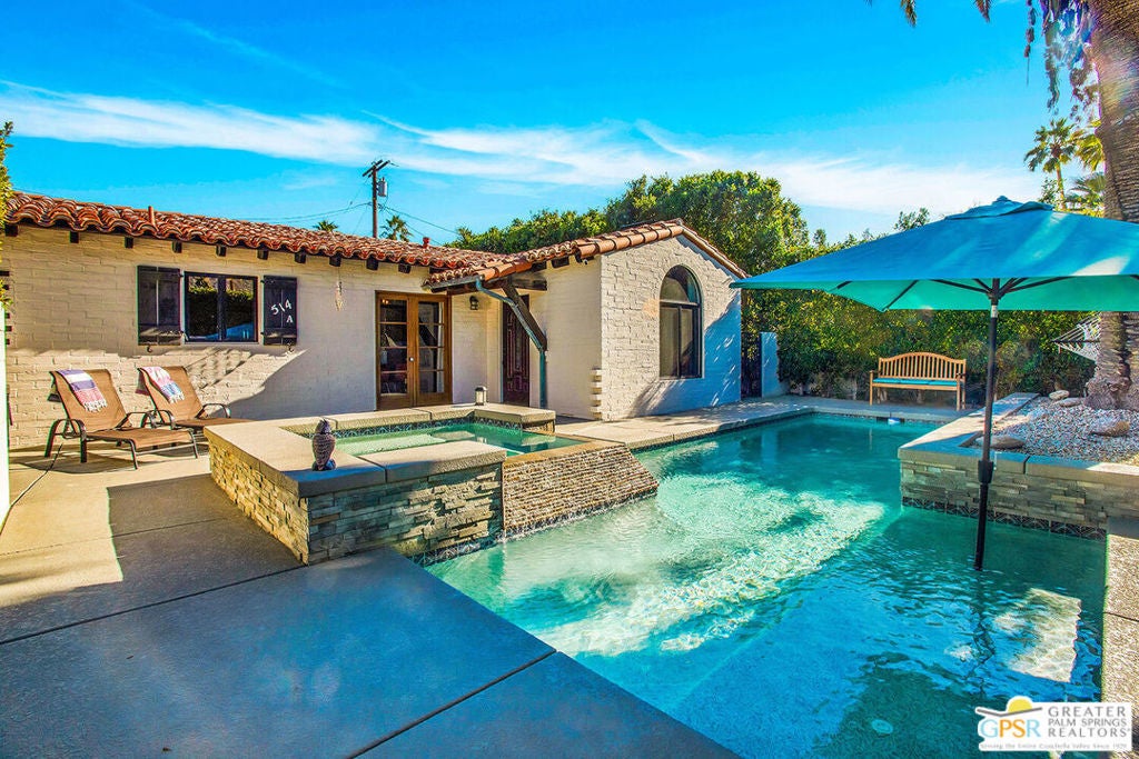 This beautifully preserved and fully furnished 1934 Spanish-style home + full casita (ADU) in the heart of Warm Sands offers a unique opportunity to experience the charm of old Palm Springs. Situated on fee land (you own the land), this extensively renovated property retains many original details, including masonry construction, redwood beam ceilings, and cast iron curtain rods and light fixtures. While maintaining its historic character, modern upgrades have been seamlessly incorporated, such as the updated kitchens and bathrooms, the pool and spa, tankless water heaters, and more. The main house features 2 bedrooms and 2 bathrooms, a charming dining area, and a living room with a gas fireplace, while the rear house offers 1 bedroom and 1 bathroom. Each home has its separate meters ideal for generating rental income while enjoying the Palm Springs lifestyle. Conveniently located near downtown Palm Springs and its many attractions, this stunning property promises strong rental potential. Properties with this level of charm and character are rare, so don't miss the chance to make it yours. Schedule your showing today!