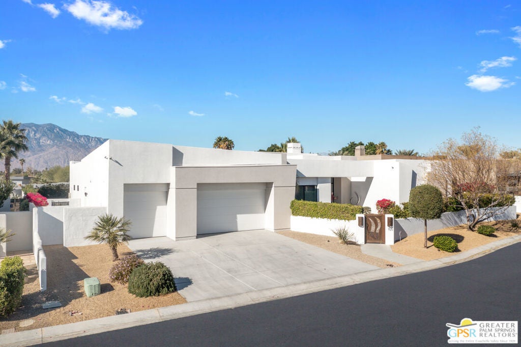 Welcome to 105 Vail Dunes Court, located in Rancho Mirage in a coveted gated community of 9 contemporary homes. This exquisite modern home spans over 4,000 square feet and boasts 4 bedrooms and 4.5 bathrooms of gracious design. It is sited on over a third of an acre to take advantage of the Majestic Panoramic Mountain views. From the moment you walk through the floor to ceiling glass entryway and step inside to the spacious, timeless interior, you notice the abundance of natural light, the 14' high ceilings and the Fleetwood pocket doors that create that sought after indoor outdoor living the Coachella Valley is known for. The sleek, modern kitchen is equipped with top of the line stainless appliances and the wet bar adds a touch of elegance, perfect for hosting gatherings. The primary bedroom offers a serene retreat, complete with a gorgeous en-suite bathroom and an extremely spacious walk-in closet with custom shelving. Each additional bedroom is thoughtfully designed with full baths and designer fixtures, providing comfort and convenience for guests. The backyard is an entertainer's dream featuring a covered lounging space, enriched by western mountain views overlooking the oversized pool adorned with 3 waterfalls, a relaxing spa and a fire pit. This home seamlessly combines modern luxury with everyday practicality, making it an ideal place to call home. Interior upgrades include, the Lutron Smart Home system, designer LED lighting accents, electric shades, Low-E Glass Windows, tankless water heaters and water softener. A 3-car garage and is pre-plumbed for an EV charging outlet