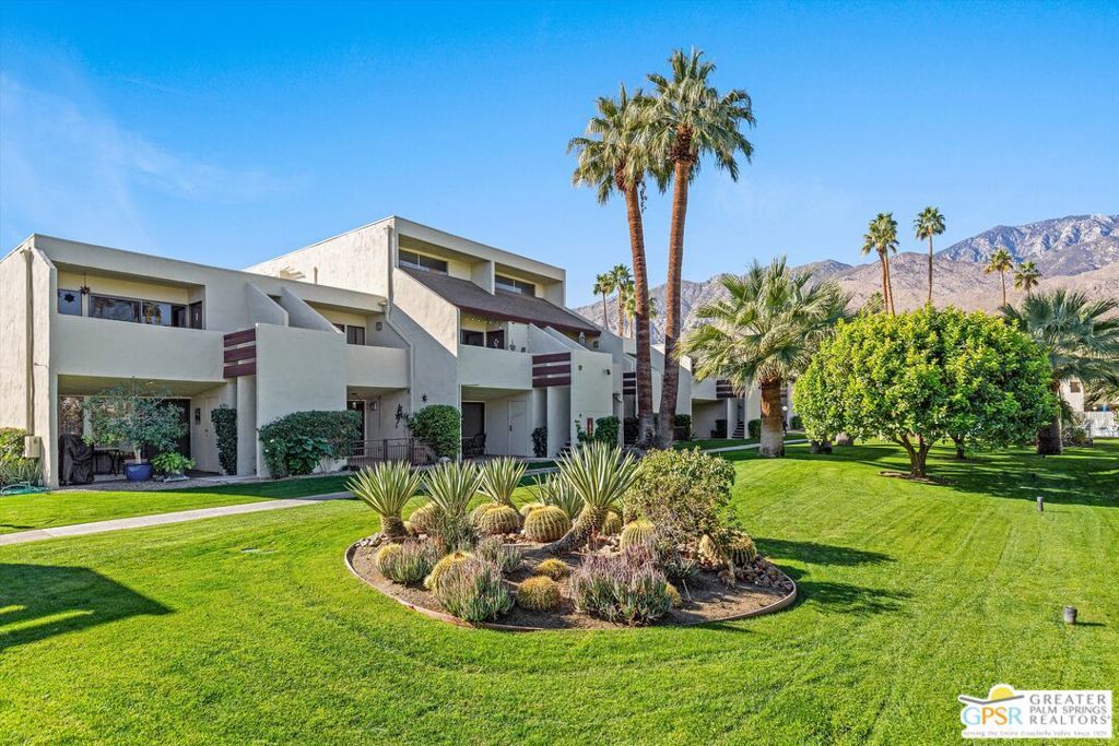 Presenting a wide array of stylish and appreciated upgrades, this light and open ground-level condo is move-in ready. The interior boasts tile flooring throughout, granite countertops, a tiled walk-in shower with a glass enclosure, and the extra large bedroom has two closets. The tile flooring flows out to a spacious fenced patio that overlooks the quiet and colorfully landscaped central park area with lush lawns. The design of the complex reflects renowned architect, Hugh Kaptur's, penchant for southwest-inspired architecture. Smoke Tree Racquet Club offers a private resort-caliber ambiance, complete with lighted tennis and pickleball courts, a dog park area, an oversized spa and one of the largest pools in the city. Abundant shopping is nearby, and downtown Palm Springs restaurants, galleries and boutiques are minutes from home. Whether you're looking for a full time residence, an attractively priced vacation getaway or an investment opportunity, this condo is a perfect choice.