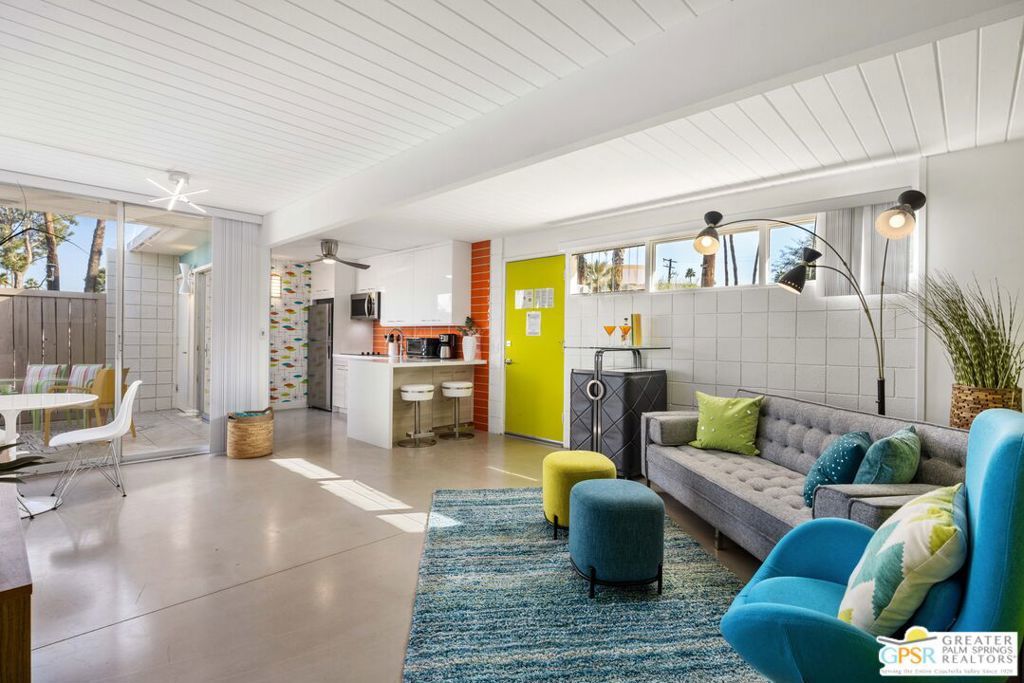Welcome to the Ocotillo Lodge Unit #340, a Historic Palm Springs Gem. Nestled in the iconic Twin Palms neighborhood, the Ocotillo Lodge was built in 1957 by renowned architects William Krisel & Dan Palmer and has a rich history of attracting celebrity guests. Originally a hotel, it was converted into condos in 1995, but its timeless charm and mid-century modern style remain intact. Recently undergoing a major renovation, this stunning condo boasts modern upgrades while retaining its historic charm. Located in the back of the complex with an East-facing patio, enjoy quiet mornings with views of the San Jacinto Mountains. The unit is newly furnished with a Mid-Century-inspired interior, channeling the vibrant Palm Springs vibe, and includes everything you need to live in comfort, from kitchenware and small appliances to bedding, decor, and artwork. Key Features: Fully furnished, with all necessary household items (except for staging pieces); Completely remodeled, including a new HVAC system; A sofa sleeper for added comfort and versatility; Full-sized washer and dryer; Monthly HOA dues cover ALL utilities: electricity, water, hot water, trash, sewage, cable TV, and internet; Located in a historic district, eligible for the Mills Act, offering potential property tax savings. The complex completed an extensive refurbishment and renovation within the last few years to preserve the original character of the architecture. Amenities include a champagne cork-shaped pool, two hot tubs, a clubhouse with pool tables, a community gym, and an outdoor Sunshine Bar with a built-in grill perfect for entertaining or enjoying a sunset cocktail. The historic significance of the Ocotillo Lodge, combined with its prime location near shops, restaurants, and entertainment, makes it a rare and sought-after property in Palm Springs. This condo has been a highly rated short-term rental (STR), receiving 100% 5-star ratings since it began renting in May 2024. Whether you're looking to immerse yourself in the desert resort lifestyle or make a smart investment, this property offers both a unique living experience and great potential. Don't miss your chance to be a part of Palm Springs history! Ocotillo Lodge is a Class 1 Historic District in Palm Springs and as such this property may qualify for Mills Act Historic Status--see listing agent for details.