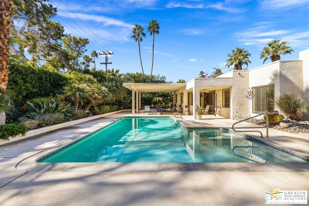 First time on the market in 25 years and ready for you to move into OR style up to 2025 design standards! Key highlights of this CLEAN 3 bedroom, 2.5 bath home in south Palm Desert include formal and casual areas, great separation of the Primary ensuite from the guest bedrooms, south-facing facing backyard with mature landscaping, private pool and spa, and views, and an attached two car plus golf cart garage. Blocks to golf and minutes to El Paseo Shopping District! Iconic mid-century inspired front doors lead to the south-facing living room with gas fireplace and a sliding glass door that opens to the private backyard. Adjacent secondary living area, den or formal dining room as well as a separate kitchen with casual dining area that opens to the covered patio and private backyard. Powder bath, too! Dual entry doors lead into the south-facing Primary Ensuite that offers views, access to the pool and spa, walk-in closet and a private bath with dual sinks, walk-in shower, separate step-down soaking tub with showerhead and sliding glass door that opens to the east-facing private patio. On the other side the house is Junior Ensuite Two with private patio and direct access to a private bath with walk-in shower. Bedroom Three looks out to a private patio and is across the hall from a bathroom. Attached two car plus golf cart garage.