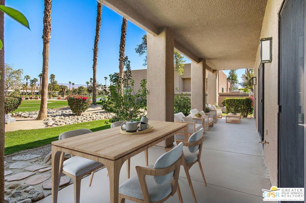 This is your chance to own a beautifully updated 3-bedroom, 2-bathroom corner-unit condominium in the highly desirable Desert Princess community. Completely redesigned for modern living, this rare offering features stainless steel appliances, including a stacked washer and dryer and freshly painted interior. Recently updated hardware and refinished front and rear patios. The location is unbeatable, just steps away from three pools and spas, while offering breathtaking views of the golf course, serene lake, and the surrounding mountains. Residents enjoy access to world-class amenities, including 27 holes of championship golf with discounted member rates, a state-of-the-art fitness center, racquetball and pickleball courts, and a full-service restaurant and bar. For those seeking relaxation, a luxury spa is also available within the community. This home is situated within a 24-hour gated community, providing both security and peace of mind. The HOA covers insurance, property maintenance, and landscaping, ensuring effortless living. Ideally located, this home is just a short drive from downtown Palm Springs, the Palm Springs airport, and the I-10 freeway, making it perfect for both full-time residents and those seeking a vacation retreat. Don't miss out on this exceptional opportunity to experience the best of desert living. Schedule a showing today! Photos are virtually staged.