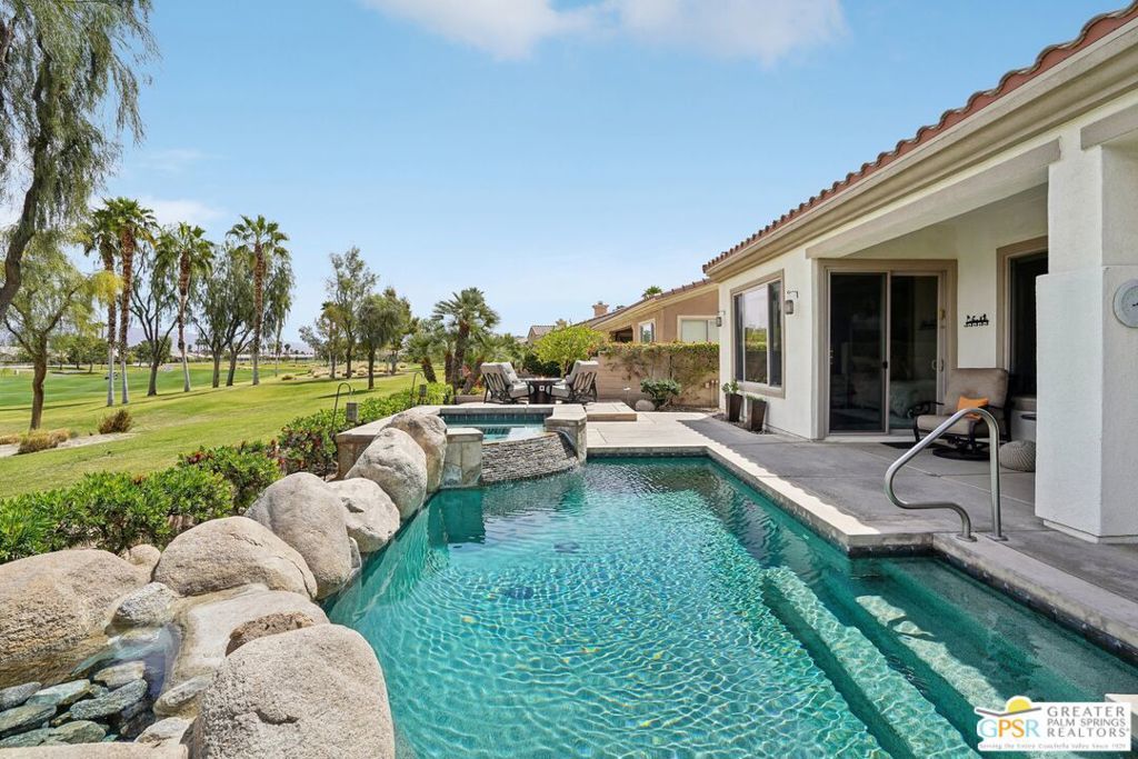 Discover luxury desert living in this spacious over 2,600 sq. ft. pool home, perfectly situated in the highly sought-after 55+ community of Sun City Shadow Hills. With breathtaking golf course views and beautiful rolling hills as your backdrop, this meticulously upgraded residence is designed for both comfort and entertainment. Inside, you'll find two spacious bedrooms, plus a versatile office/den that can easily be used as a third bedroom. The open floor plan is enhanced by energy-efficient recessed lighting, ceiling fans throughout, and stylish new fixtures. The enormous primary suite is a true retreat, featuring a luxurious spa-like bath and an oversized walk-in closet. The guest bath has been elegantly updated with a modern shower, while the powder and primary baths feature smart mirrors and upgraded lighting . Step outside to an incredible outdoor living space, where a custom-built outdoor kitchen (2021) await perfect for entertaining while soaking in the stunning golf course and mountain views. The sparkling pool and spa have been enhanced with a new filter (2023) and a new heater (2024) for year-round enjoyment. Additional upgrades include: New touchless kitchen faucet (2020) New hot water tank (2020) New sliding screen door New microwave (2024) With an unbeatable combination of space, luxury upgrades, and resort-style community amenities, this home is a rare gem in Sun City Shadow Hills. Don't miss out schedule your private tour today!