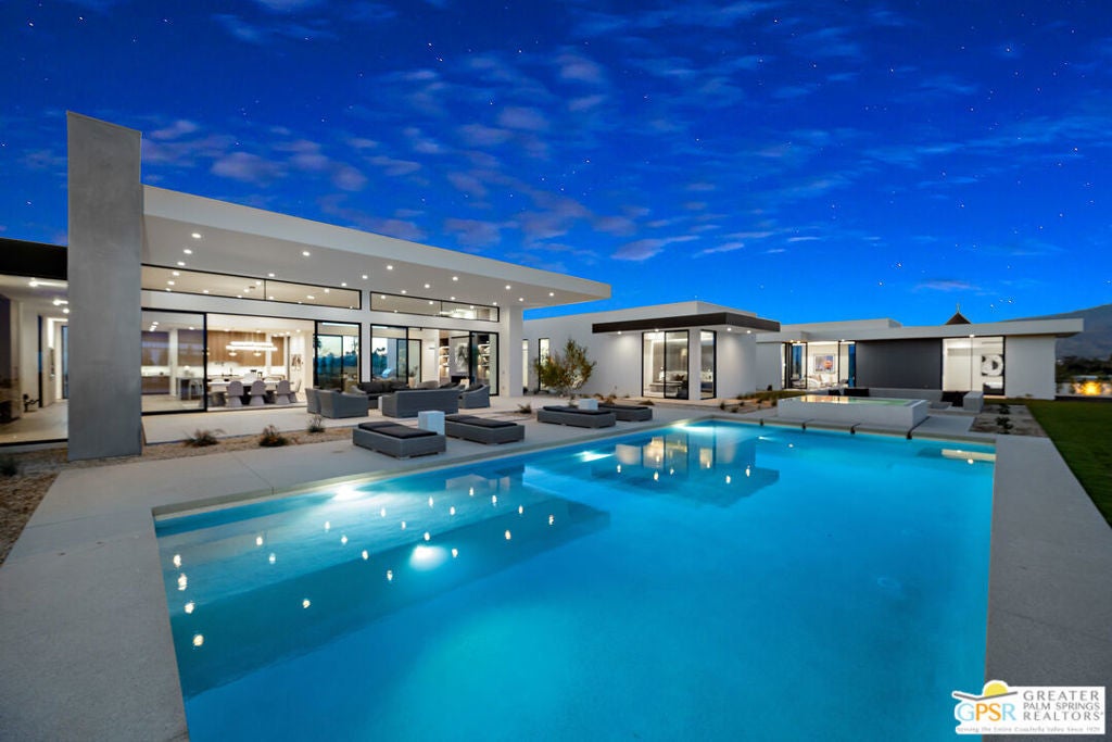 Introducing 3 Wren Court - the final and most expansive offering in this exclusive enclave of contemporary estates in Rancho Mirage. Set on a commanding 1.75-acre lot, this brand-new architectural residence redefines desert luxury with bold design, refined finishes, and resort-quality amenities. At the heart of the home is a dramatic open-concept layout designed for effortless indoor-outdoor living. Walls of glass frame panoramic mountain views and open to a resort-style saltwater pool with infinity-edge spa, sculpted desert landscaping, and expansive entertaining areas. Every detail is thoughtfully considered, from the expansive great room with panoramic sliding glass doors to the gourmet kitchen featuring top-of-the-line Dacor appliances, a separate butler's kitchen for seamless hosting, and a stylish wet bar complete with wine refrigeration. The main residence offers a grand primary suite with a spa-like bath, including indoor and outdoor showers and a soaking tub, as well as two guest suites with private en-suite bathrooms and a shared sitting room, ideal for hosting family or friends. A versatile flex room provides space for a home theater, personal gym, or private office. A detached guest house offers its own living area and total seclusion from the main home, making it perfect for extended stays or added privacy. Additional highlights include a private motorized gate and long driveway approach, a fully owned solar system with backup battery, a Control4 smart home automation system, a custom-designed fire feature, built-in barbecue, and an air-conditioned garage with generous capacity. Built as the pinnacle of the collection, 3 Wren Court is more than just the final home, it's the estate that brings the vision full circle. An uncompromising blend of architectural sophistication, privacy, and desert serenity awaits.
