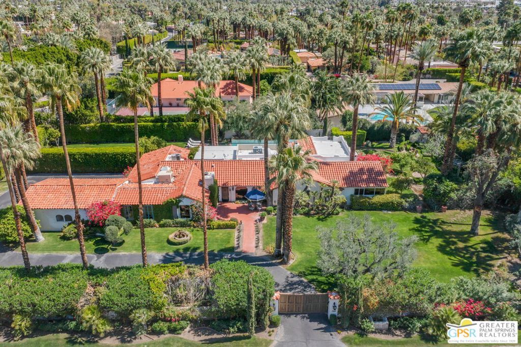 Tucked away in the highly sought-after Old Las Palmas neighborhood of Palm Springs, this enchanting 1940 Spanish-style estate offers the perfect blend of character, comfort, and privacy. Situated on nearly an acre of lush grounds, the home is surrounded by breathtaking mountain views, expansive front and rear lawns, and a delightful variety of fruit trees including lemon, Meyer lemon, lime, grapefruit, and fig. Inside, warmth and charm define every space. The inviting living room, with its vaulted ceilings and fireplace, is a cozy retreat for quiet evenings or gathering with friends. The adjoining formal dining room, also with vaulted ceilings, exudes an intimate ambiance, perfect for both casual meals and special occasions. Four spacious ensuite bedrooms ensure comfort for family and guests, while a separate office and powder room add to the home's versatility. The renovated kitchen, featuring Calacatta marble countertops, combines classic elegance with modern convenience. A sunlit poolside family room, framed by large-format glass doors, seamlessly connects indoor and outdoor living, creating the ultimate space for relaxation and entertaining.Completely walled and gated for privacy, this thoughtfully designed home is a rare find in one of Palm Springs' most coveted neighborhoods.