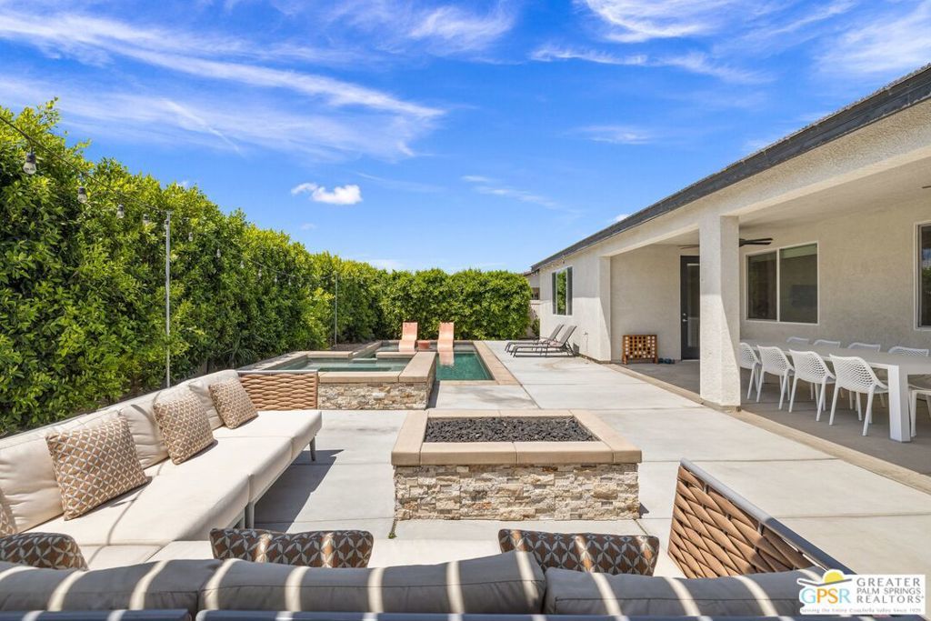 WOW! Boldly updated and ready to impress. If you're chasing tall ceilings, designer finishes, killer outdoor living, and serious BEDROOM COUNT, this one brings it. The SHORT-TERM RENTAL angle? Strong. Ask about it! Out back, a NEWER POOL AND SPA with a waterfall steal the show. Stone fire pit is a delight! Built-in barbecue with buffet, a large, covered patio, and a modern pergola dining area, all dialed in for entertaining. And yes, the backyard is ultra private! Inside, the living and dining spaces come together around a large island perfect for hosting or hanging out. The kitchen pops with sleek tile work, fresh fixtures, a walk-in pantry, and new flooring that runs all throughout. The living room's built-in bar with a beverage fridge brings the vibe as well. Bedrooms are split between two wings for maximum privacy. The ensuite primary opens straight to the pool and includes dual vanities and a large walk-in shower. Guest bedrooms two and three share a full bath; same with four and five. All bathrooms are upgraded with clean, modern counters. The three-car garage includes an EV charger. Front-to-back desert landscaping was redone in 2022 is low maintenance, high style. The utility room is fully equipped with built-ins and a smart folding station. Just minutes from Coachella and Stagecoach, this is your hub for everything the desert has to offer. NO LAND LEASE and NO HOA FEES. Short Term Rental friendly! Check out the Matterport Virtual Tour for the full vibe, then schedule a tour and motor over to Indio's Whitter Ranch neighborhood for a closer look!