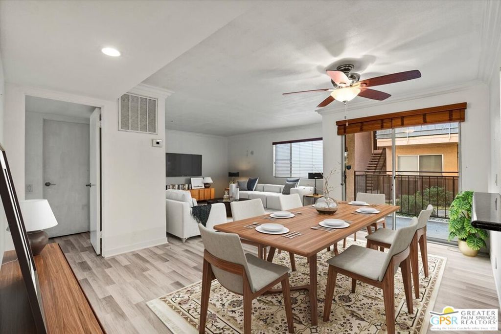 Welcome to 400 N Sunrise Unit #125 in Americana Gardens, a community centrally located in beautiful Palm Springs' Sunrise Park neighborhood -- just minutes from shopping, restaurants, Palm Springs Cultural Center, library, baseball park and so much more. This freshley painted, lower floor (no steps) 2 bedroom, 2 bath condominium with open floorplan features updates including flooring, bathrooms, dishwasher, kitchen sink and is an ideal income property, vacation home or primary residence. A side-by-side washer & dryer is included as well as all other appliances. The spacious living area opens to a covered patio facing South with a view of Mt San Jacinto. The affordable monthly HOA fee includes building maintenance, trash, water, 3 pools/spas, fitness center and clubhouse. This home has been rented to one tenant for several years and is now vacant and ready for the next resident or a proven income property for an investor.