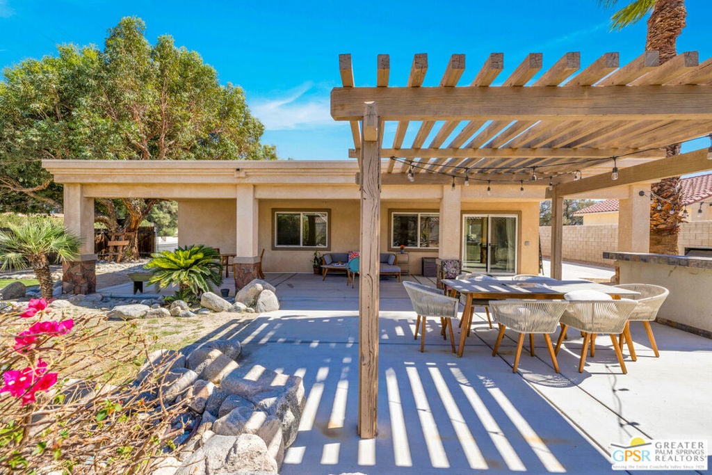 Charming home on a corner lot in the Rio Vista neighborhood in Cathedral City! This home has been updated within the last few years and features a large great room, open kitchen with breakfast bar, stainless appliances, and tons of natural light. The outdoor covered patio is an extension of the interior space with additional lounge and dining spaces. The primary bedroom has an en-suite bath, and two additional bedrooms that share the second bath. Currently the owners are using part of the garage as a home gym, and work space. But the best part is there is a new mini-split AC unit in the garage! The homes' AC unit has also just been replaced. The home is nicely positioned on the lot which offers a large RV parking pad on one side and additional space on the other. Plenty of space to add a pool or hot tub. There is also a small storage shed for those things you just want to hide away. Nice mountain views complete the picture.