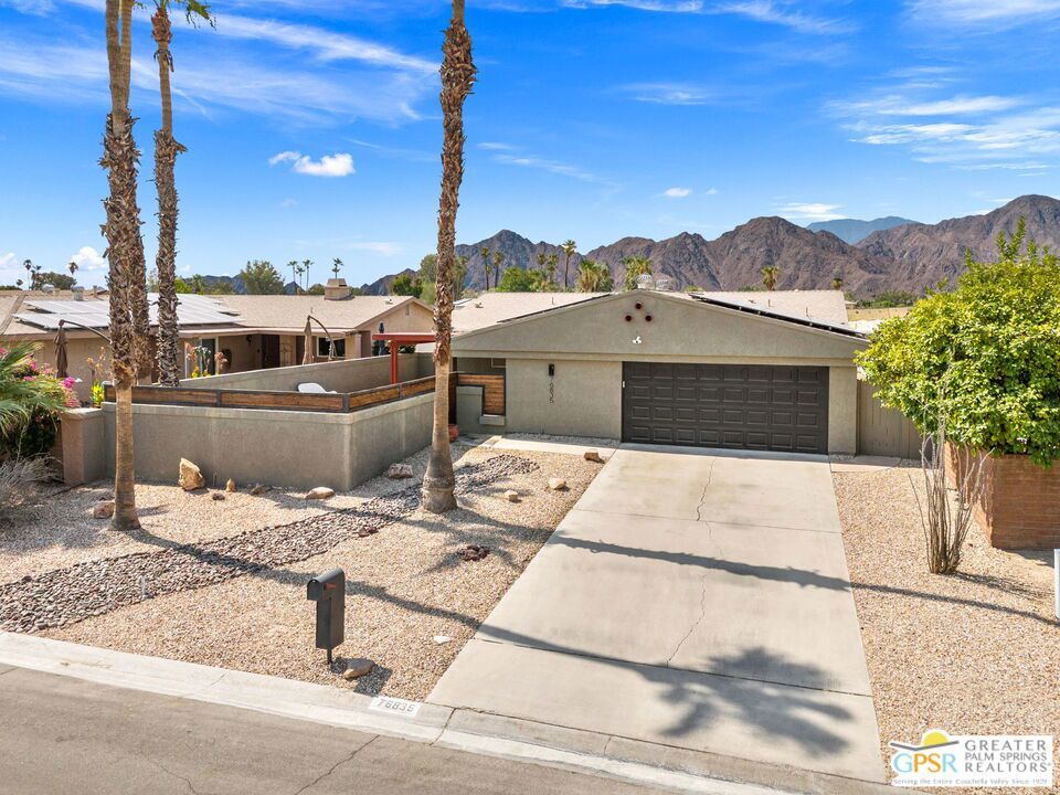 PRICE IMPROVEMENT! Discover a perfect blend of comfort, style, and efficiency in this beautifully renovated 3-bedroom, 2-bath single-family home, ideally situated in the sought-after Palm Desert Country Club. Whether you're looking for a refined family residence or a premium investment property, this desert gem offers elevated living in every detail. Freshly updated with new designer paint and plush carpeting, the home features a light-filled open floor plan designed for effortless entertaining and everyday luxury. The inviting living and dining areas flow seamlessly into a well-appointed kitchen, while the spacious primary suite offers a peaceful retreat with a private en-suite bath and generous closet space. Step outside to your own private front yard sanctuary, where a spa/hot tub invites relaxation under the stars. The expansive outdoor space is ideal for al fresco dining, play, or hosting gatherings in true resort style. A rare and valuable feature, the oversized two-car garage offers ample room for vehicles, plus additional space for a golf cart, workshop, or storageperfect for both growing families and savvy investors. Enjoy substantial energy savings with the leased solar panel system, offering both eco-conscious living and lower utility costs, particularly during the summer months. As an added benefit, there is NO HOA, allowing for more savings! Nestled near world-class golf, schools, shopping, and dining, this home delivers a premier desert lifestyle with the potential for strong rental income or year-round enjoyment. Experience the perfect balance of elegance and function in this Palm Desert Country Club retreat. Schedule your private showing today!