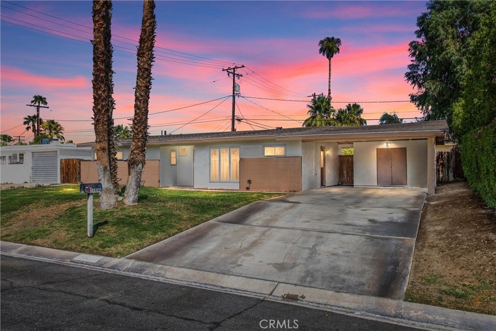 Welcome to 74644 Leslie - This immaculately maintained mid-century style desert home awaits you. Part of the Country Club Villas with a sparkling community pool. This spacious 3 bedroom home has a flowing open floor plan, with plenty of storage and a large living room that opens up onto the spacious backyard, two large secondary bedrooms are complete with closets. The master bedroom is finished with its on master bathroom/ensuite. This beautiful home has a triple pane windows, a newer roof and just recently was totally repiped all the way to the street! We cannot wait for you to see your new home!